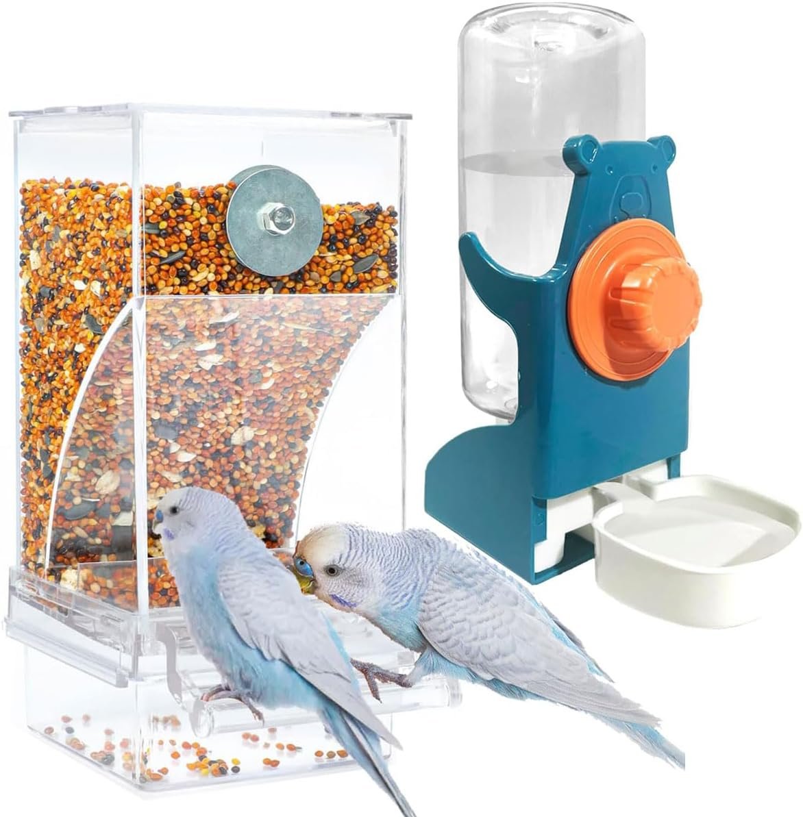 2 Pcs 3.17 Qt/3 L Bird Seed Storage Container Airtight- Portable Plastic Pet Food Container with Measuring Cup, Clear Wild Bird Seed Dispenser for Birds Pets Food Chicken Seed Storage, BPA Free