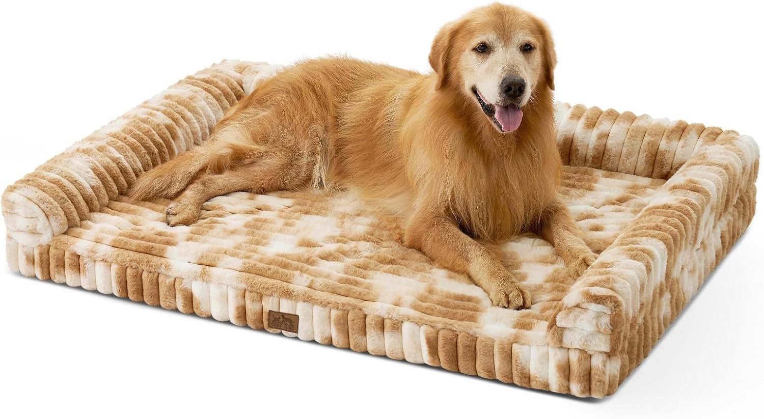 Cute Dog Bed for Large Dogs, Faux Rabbit Fur Orthopedic Foam Dog Bed with Sides, Removable Washable Cover & Waterproof Lining, Comfortable Pet Couch, Grey (44″ L x 32″ W x 7″ Th)