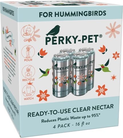 Perky-Pet 522 Ready-to-Use Clear Hummingbird Nectar in Recyclable Aluminum Can – 4 Cans, 16 oz Each – 64 Fl oz