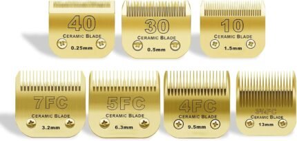7 Pack Detachable Pet Dog Grooming Clipper Ceramic Blades Set,Compatible with Andis,Oster A5,Wahl KM10 Series Clippers,Gold (10+30+40+7FC+5FC+4FC+3FC)