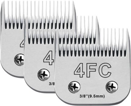 Audoc 3Pack 4FC Blades for Dog Grooming Blades Compatible with Andis,Oster A5,Wahl km10 Dog Clippers,Detachable Dog Clipper Blade for Dog Cat Horse Animal,Size-#4FC, 3/8-Inch Cut Length (9.5mm)