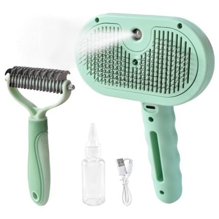 3-in-1 Pet Steam Brush for Dog Cat,Double-Sided Undercoat Rake for Shedding & Grooming,Spray Pet Hair Removal & Deshedding Dematting Comb for Long Short Haired,2 PCS