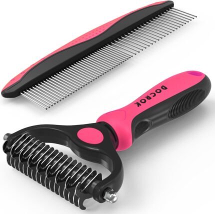 Pet Grooming Brush & Comb Combo, Cat & Dog Brush for Shedding & Dematting, Undercoat Rake for Long-haired Pets, Pink
