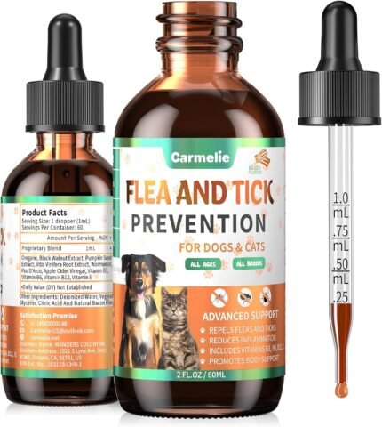 Oral Flea and Tick Support for Dogs and Cats, Natural Dog Flea and Tick Defense, Cat Flea Drops Supplements with Vitamin for Pets – All Breeds and Ages – Bacon