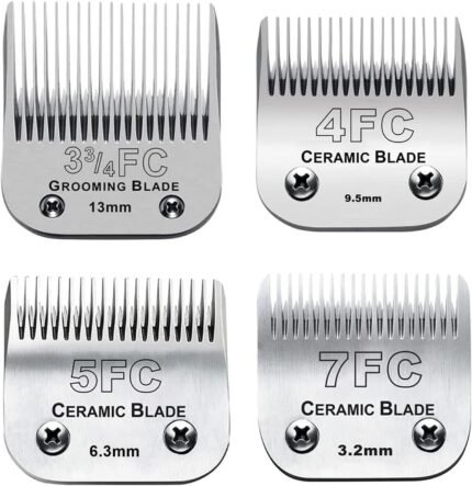 4pcs Dog Grooming Blades Compatible with Andis Dog Clippers,Detachable Ceramic Blade & Stainless Steel Blade (3FC+4FC+5FC+7FC)
