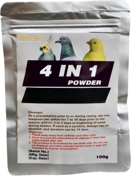 4 in 1 Powder Medicine for Pigeons, Canary, Finches, Parakeet, Cockatiels, Parrots, Cage Small Birds, & Aviary Birds