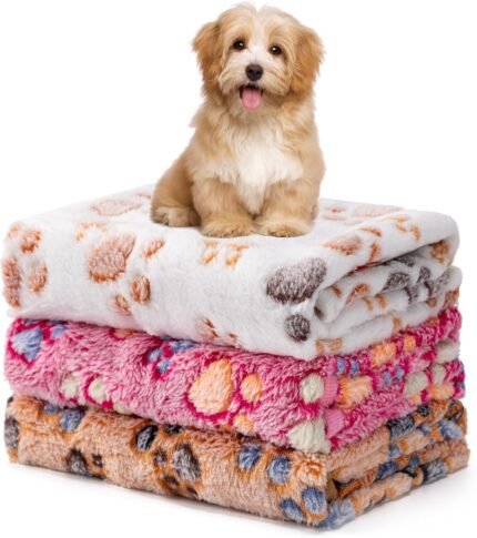 1 Pack 3 Blankets Fluffy Premium Fleece Soft Pet Blanket Flannel Throw for Cat Dog Puppy (Small 23×16”, Paw-White/Pink/Brown)