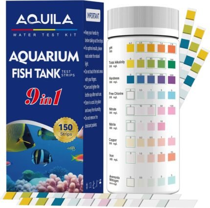 Aquarium Water Test Kit 9-in-1, Aquarium Ammonia Test Strips for Fish Tanks and Ponds, 150 Strips Testing pH Total Alkalinity Hardness Chlorine Nitrite Sulfate Copper Iron for Fresh and Salt Water