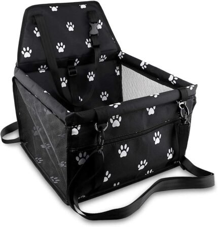 Petbobi Pet Reinforce Car Booster Seat for Dog Cat Portable and Breathable Bag with Seat Belt Dog Carrier Safety Stable for Travel Look Out,with Clip on Leash with PVC Tube (Foot)