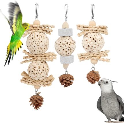 Wontee Bird Toys 3 Pack Parrot Foraging Hanging Toys Sola Ball Natural Nuts Chew Toys for Cockatiels Conures Parakeets Budgies Senegal (3 Pack)