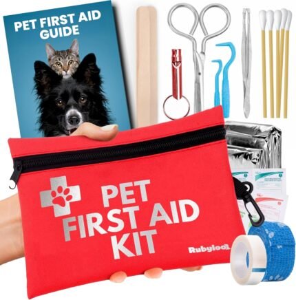 Dog First Aid Kit for Hiking & Travel – Vet Approved Emergency Supplies – Pet First Aid Kit Guide, Tick Remover, Thermal Blanket & More – Compact Dog Hiking Gear for Camping, Hunting, Backpacking