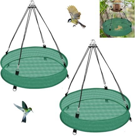 2Pcs Bird Seed Catcher Tray for Hanging Bird Feeder Platform, 4″ Deep Birdseed Hoop for Hummingbird Feeders Bee Feeder Outdoor Garden Accessories (Green, 20inch)