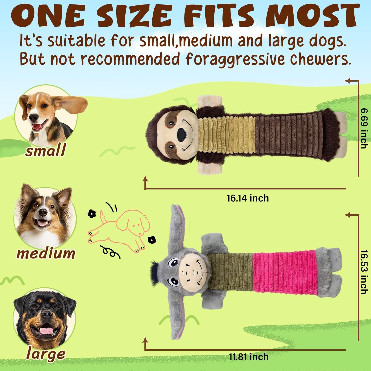 2 Pack No Stuffing Dog Squeaky Toys,Dog Chew with Crinkle and Squeaker,Cute Animal Plush to Keep Them Busy, Suitable for Large, Medium and Small Breeds (Donkey&Sloth