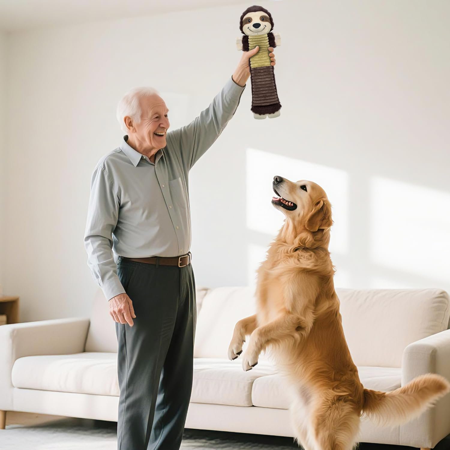No Stuffing Squeaky Toys: Crinkle paper all over the body and a squeaker in the head, keeping your dog entertained for hours. These stuffing-free dog toys eliminate the risk of choking and reduce household cleaning burdens by preventing filler spillage during your puppy’s tugging and chewing. Enjoy a safer, cleaner play experience with our durable non-stuffed dog toys.