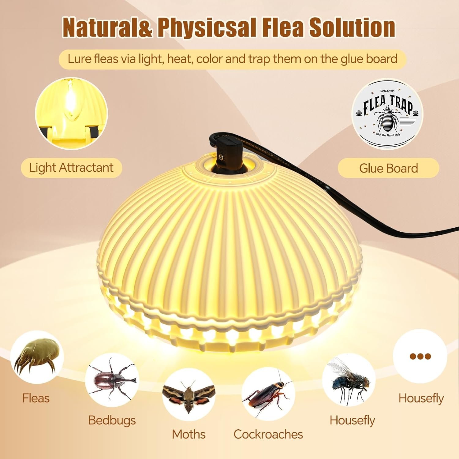 Powerful Flea Attraction: Our flea traps utilize 2025-advanced technology to attract fleas, moths, tiny spiders and other tiny pest effectively. With scientific warm light and heat sources, they entice fleas to enter the trap, ensuring maximum capture rates.