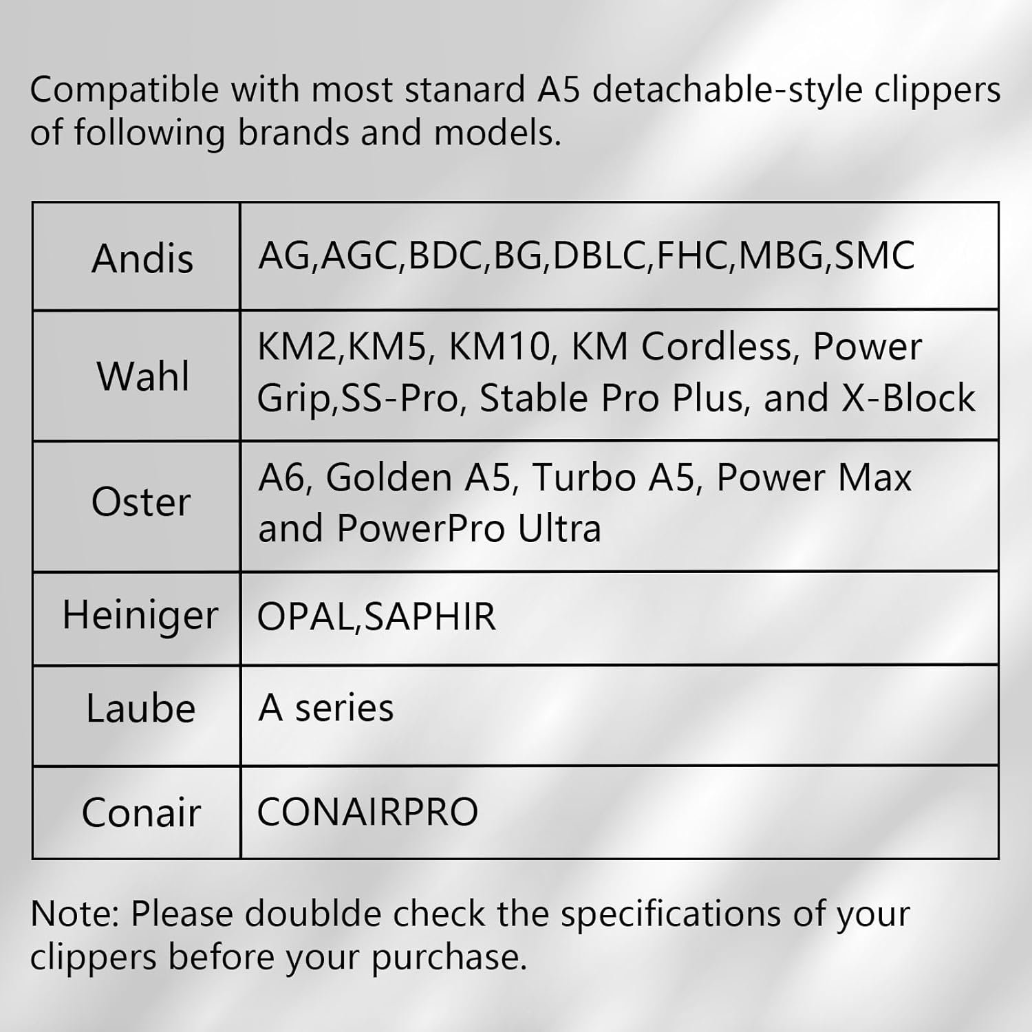 Compatible Models: This blade is compatible with the Andis AG series, Wahl KM series, Oster A5 series, and many other pet clipper models