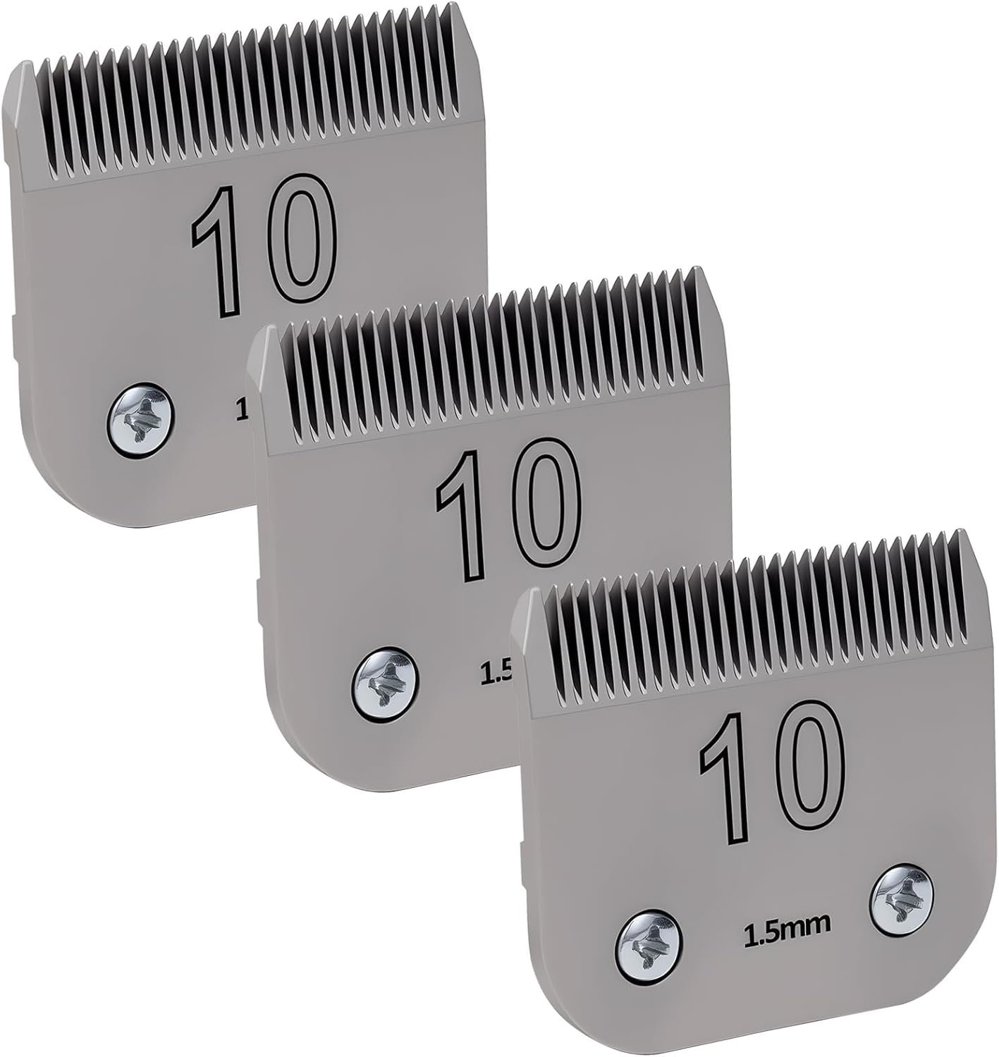 3 Pack 10# Removable Dog Grooming Blades, Made of Carbonized Steel, Suitable for Andis/Oster A5/Wahl KM Series, Cutting Length 1/16″ (1.5 mm)
