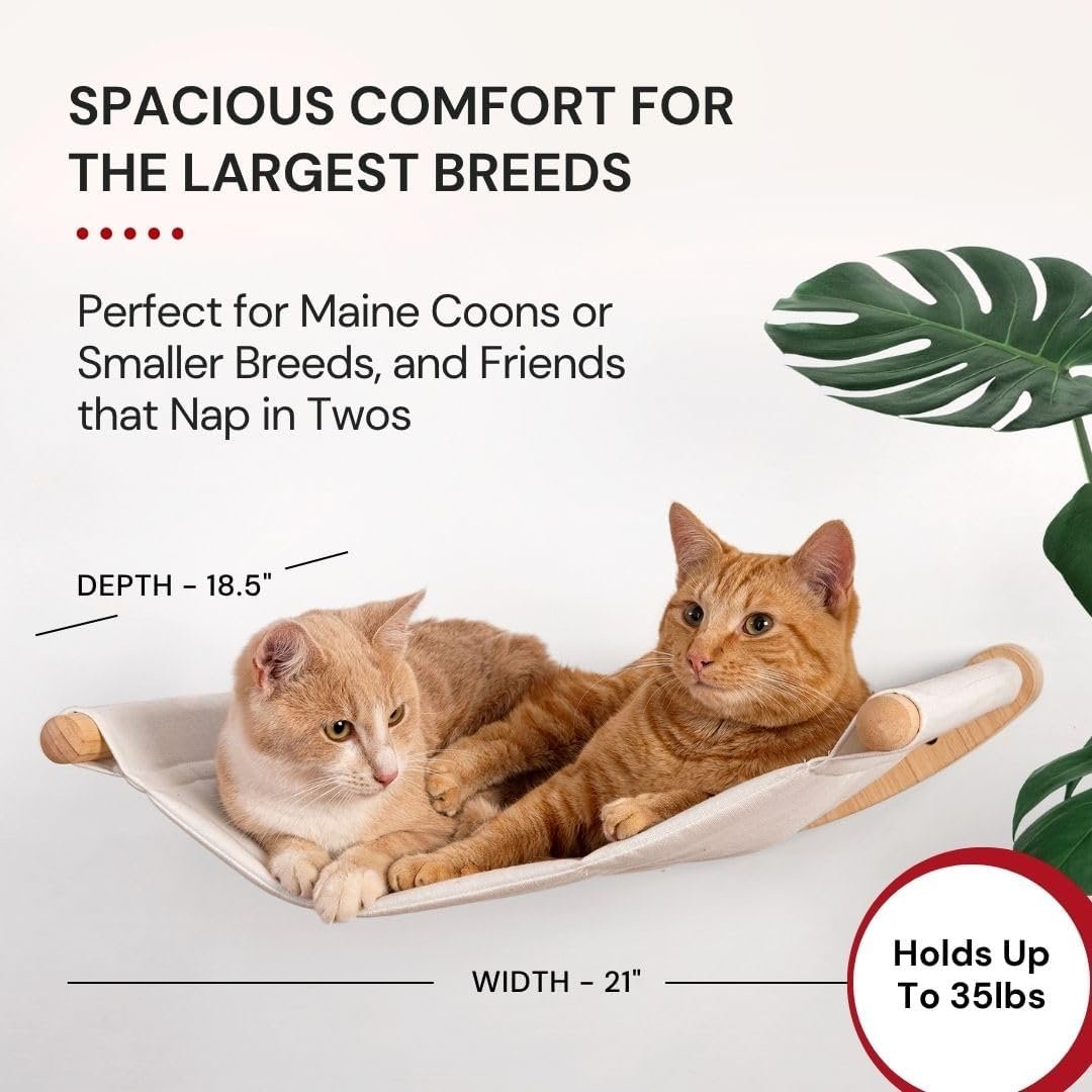 HOLDS UP TO 35lbs – Strong, Secure & Cat-Ready: Crafted from durable wood with reinforced fixings, this cat hammock holds up to 35lbs when properly mounted into wall studs, providing steady support compared with an average cat window perch. The cotton canvas cover is double-stitched to resist sagging and maintain its shape over time. Designed for daily use and feline antics, it offers lasting stability, gives you peace of mind, and lets your kitty relax up high with total