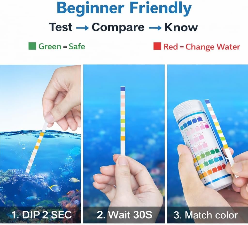 EFFICIEN AND SAFTE: This fish tank test kit offers quick, safe, and easy testing, providing you with accurate water values for your aquarium, fish tank, or pond.Regularly using our aquarium test strip will help you maintain a healthy environment for your aquatic pets, promoting their well-being and longevity.