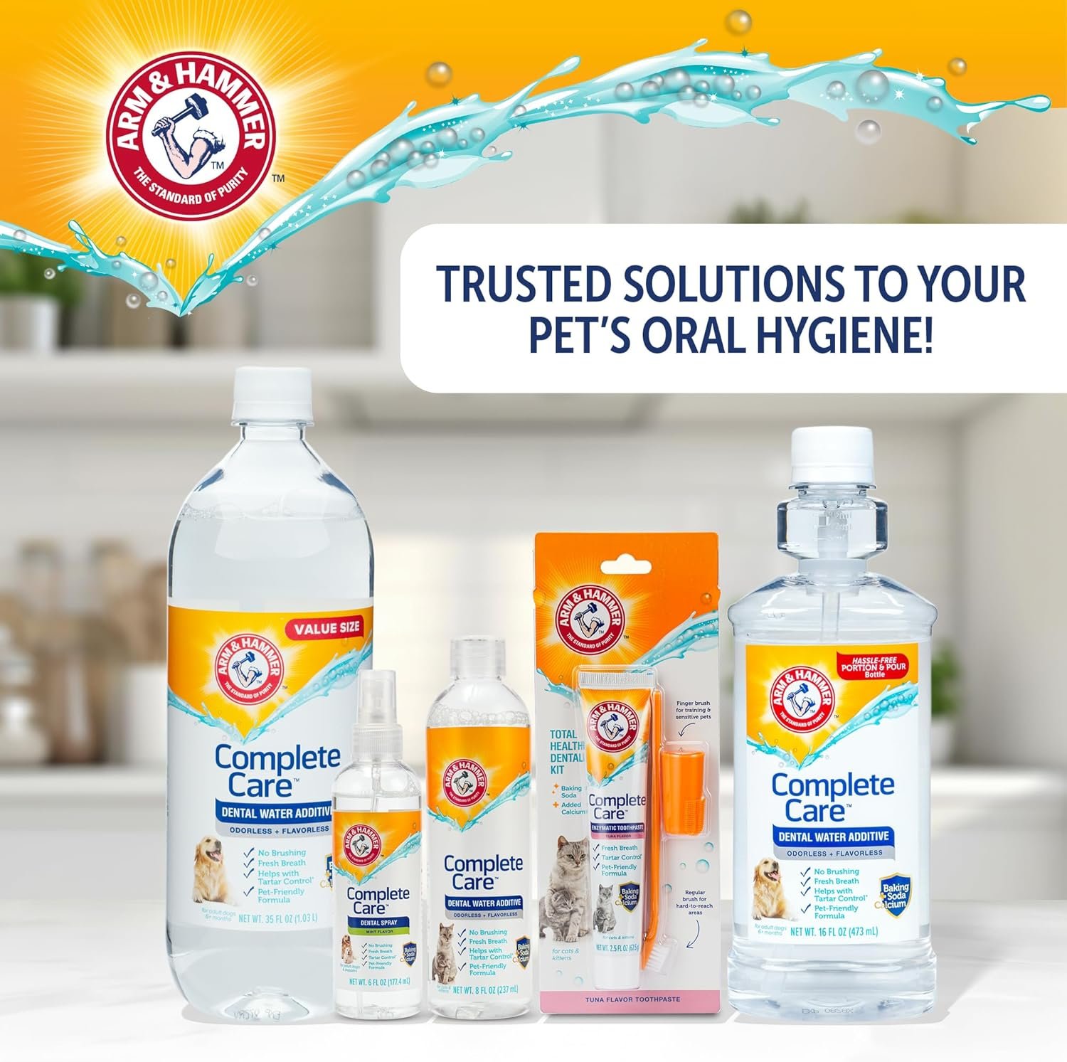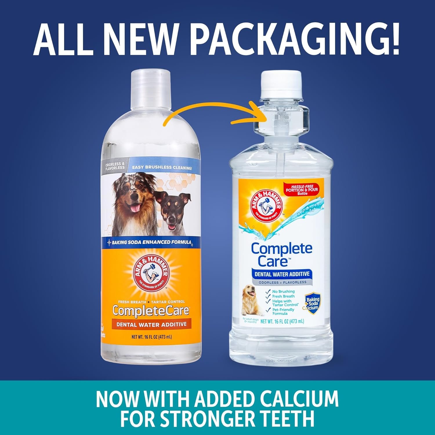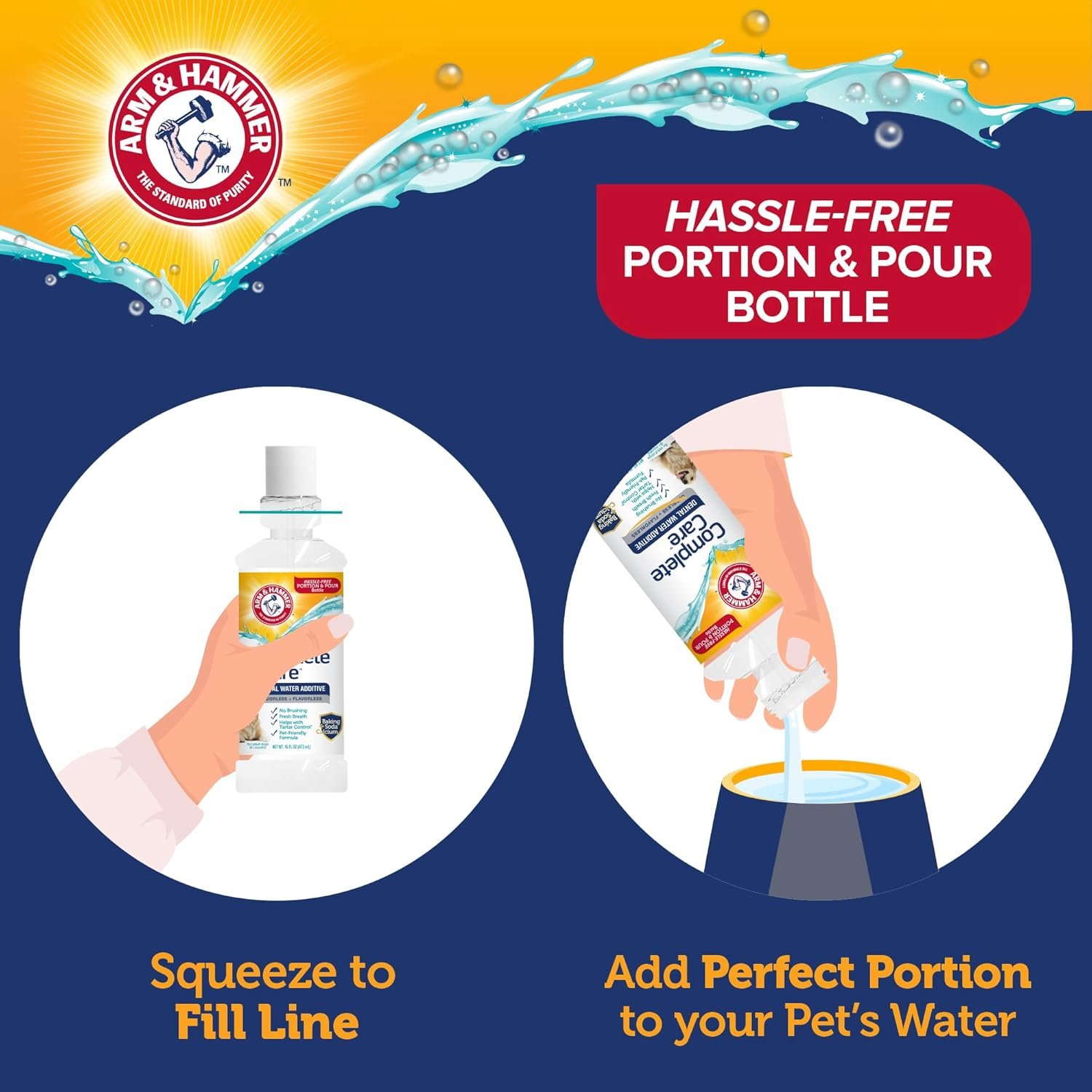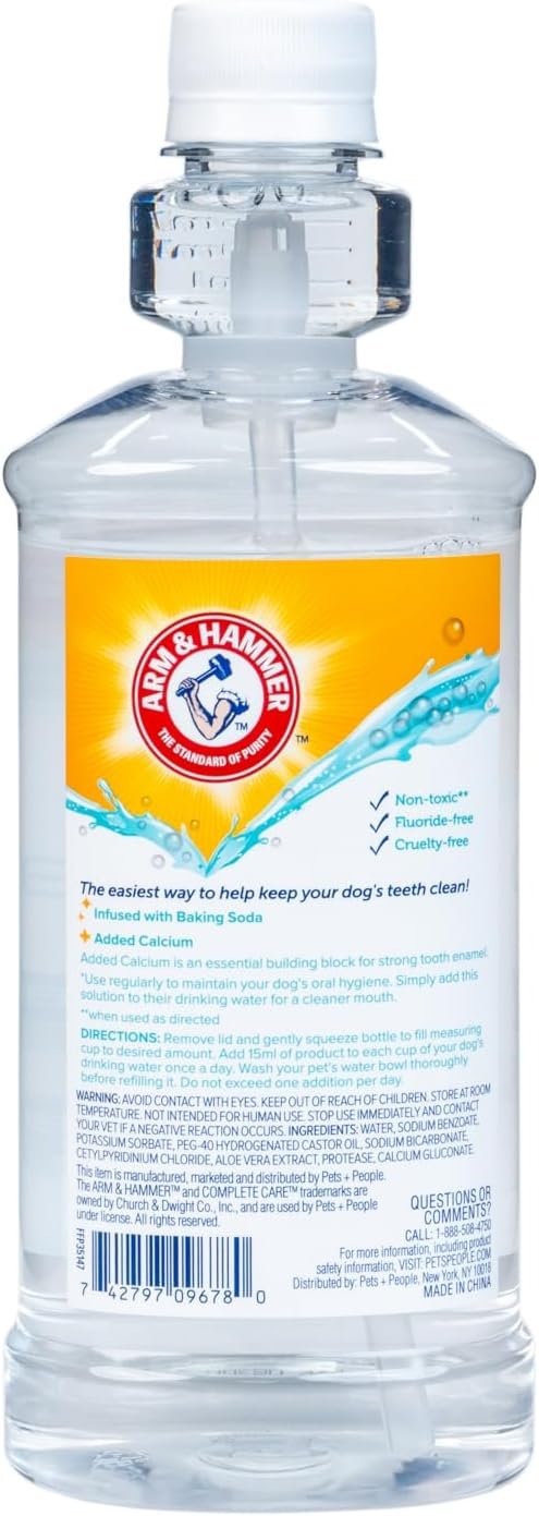 Arm & Hammer Complete Care Dental Water Additive for Dogs, Easy Portion Bottle, Dog Breath Freshener, Dog Mouth Wash or Dental Rinse, Simply Add to Pet Drinking Water for Fresher Breath, 16 FL OZ