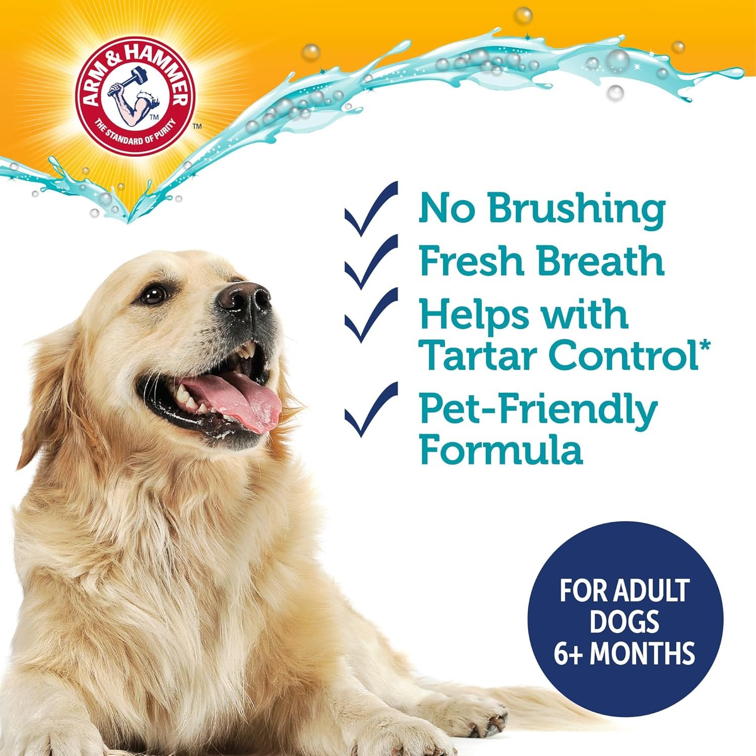 BAKING SODA ENHANCED FORMULA – This water additive for dogs is made with signature Arm & Hammer baking soda to clean teeth and deodorize bad dog breath.