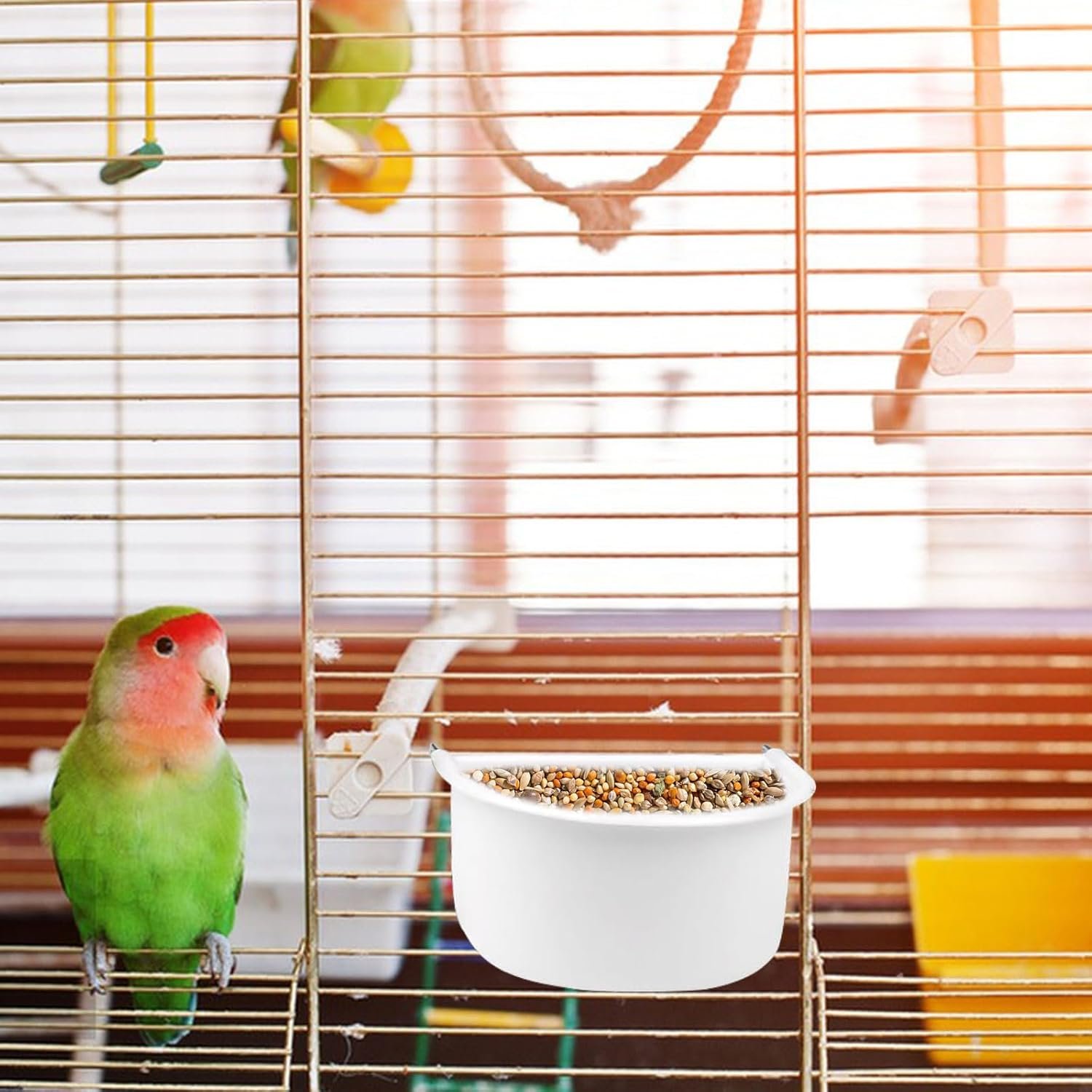 Bird feeder cage bowl is suitable for parrots, sparrows, lovebirds, macaws and other small animals.