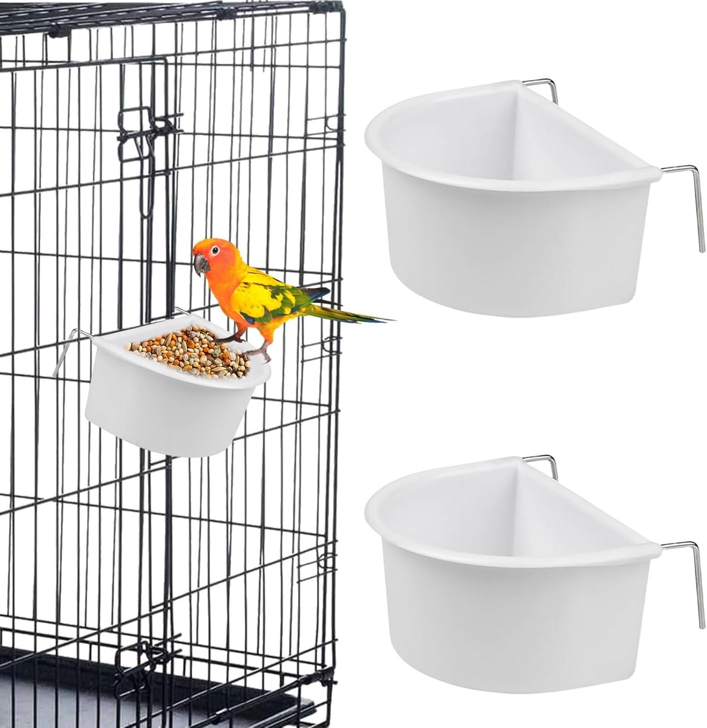 【Easy to install】Bird food bowl for cage is easy to assemble and clean, the back of cage feeders have hooks,Easily mounts to any wire cage.