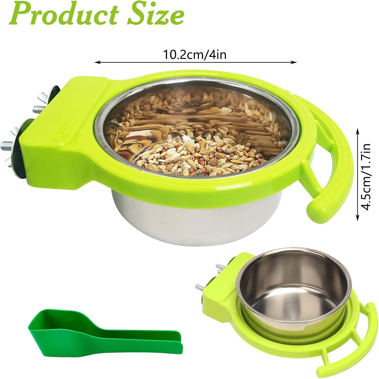 Large Stainless Steel Bowl: BONSDM bird food bowl includes 2x bird bowls and 1x feeding spoon. The diameter of the stainless steel bird bowl is 4in. It has a large capacity and won’t take up too much space