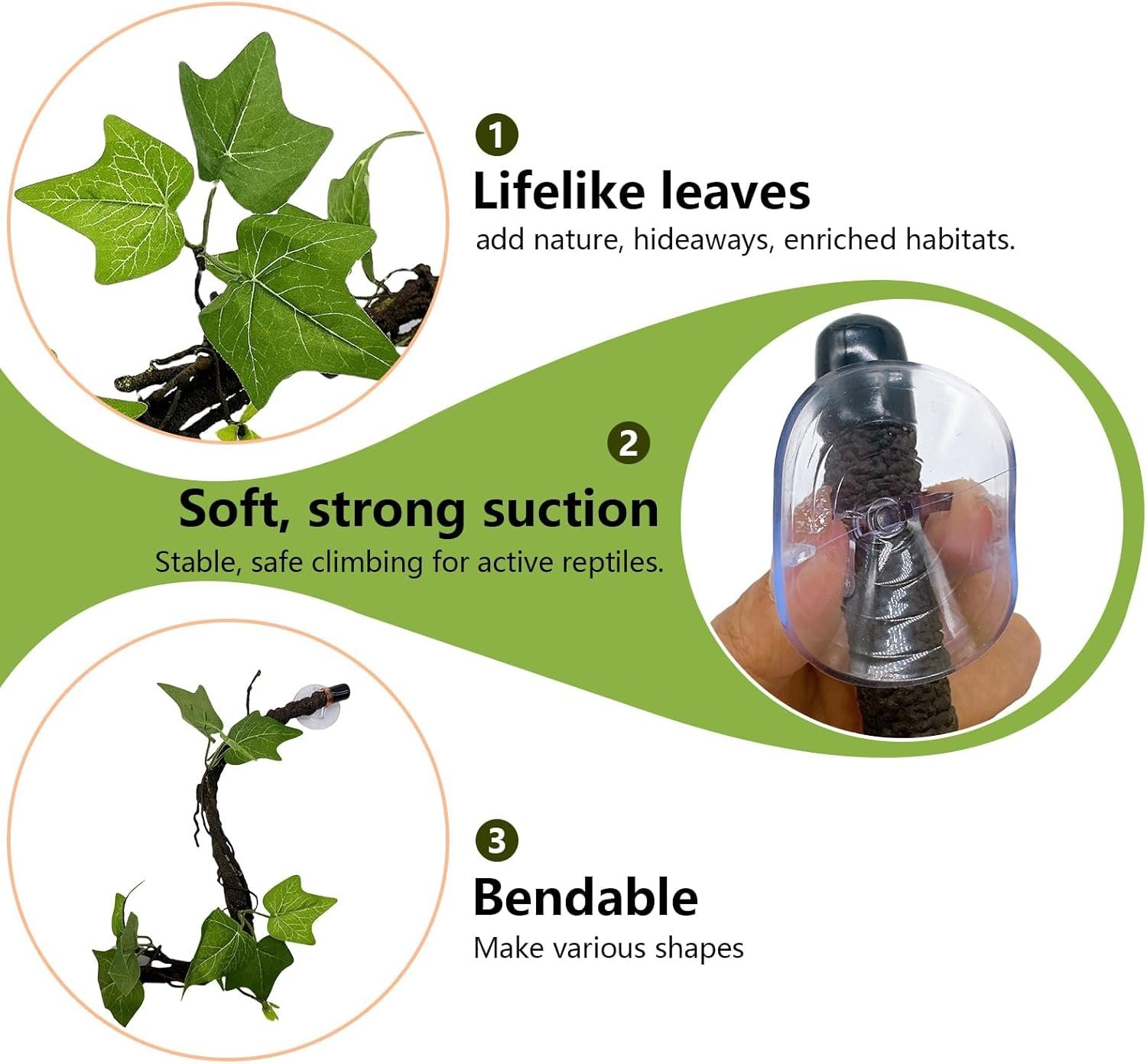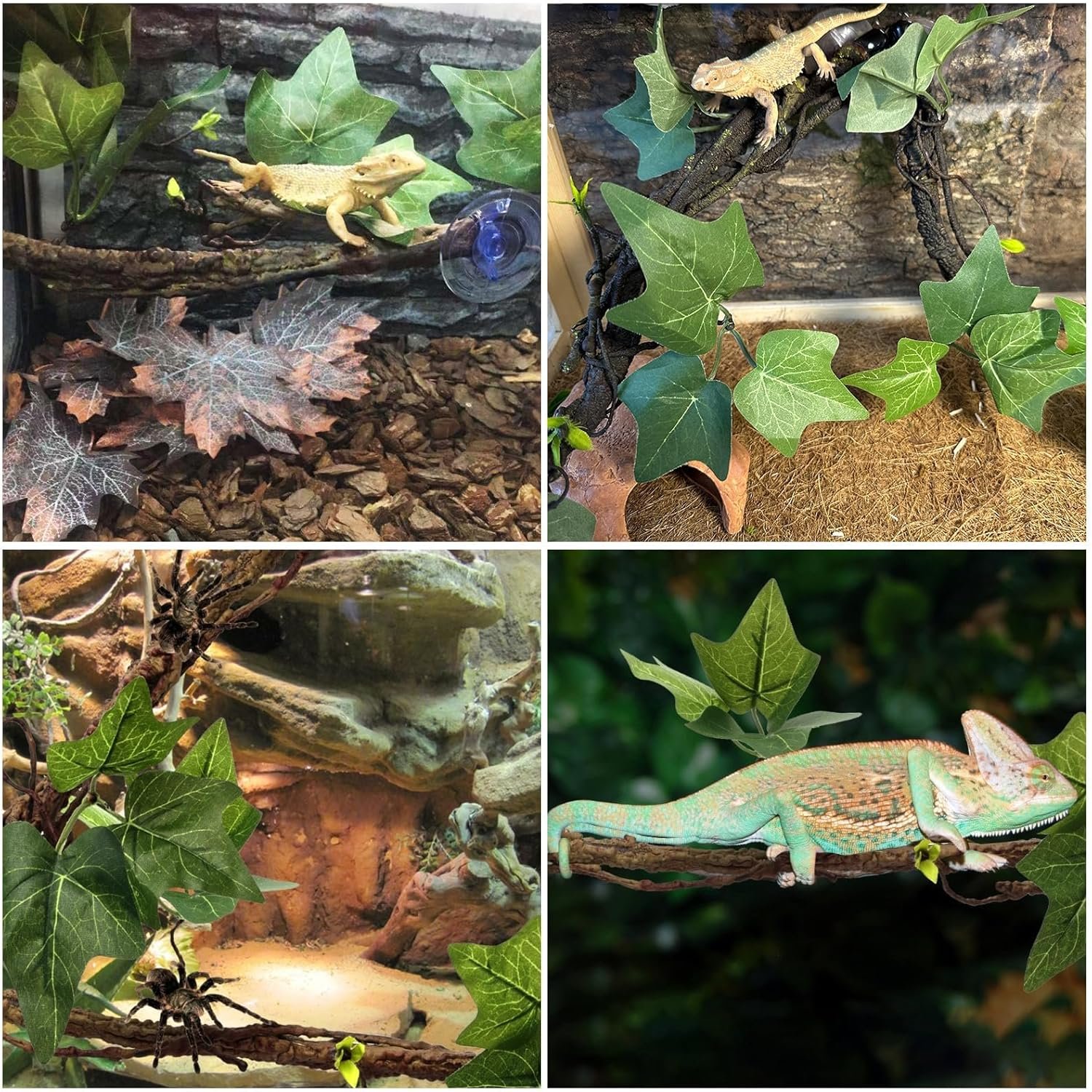 【Package contents】You will get 2 plant leaf vines and 4 powerful suction cups to hold your decorations that will create a truly natural atmosphere for your reptiles.