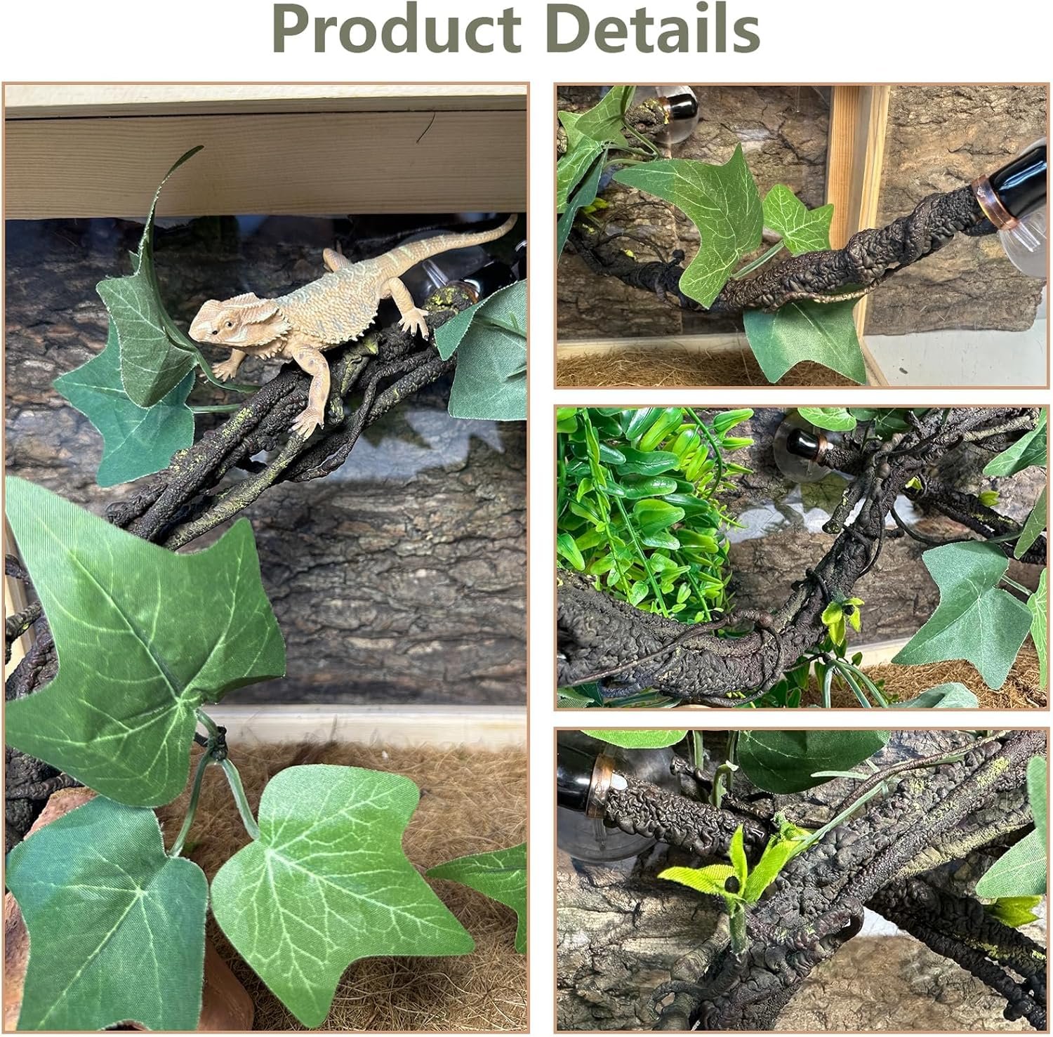 【Wide applications】Decorating a reptile tank with reptile plant vines will make your pets feel as comfortable as they would in nature, making them safer and less stressful. Suitable for bearded dragon, lizard, chameleon, gecko, snake.