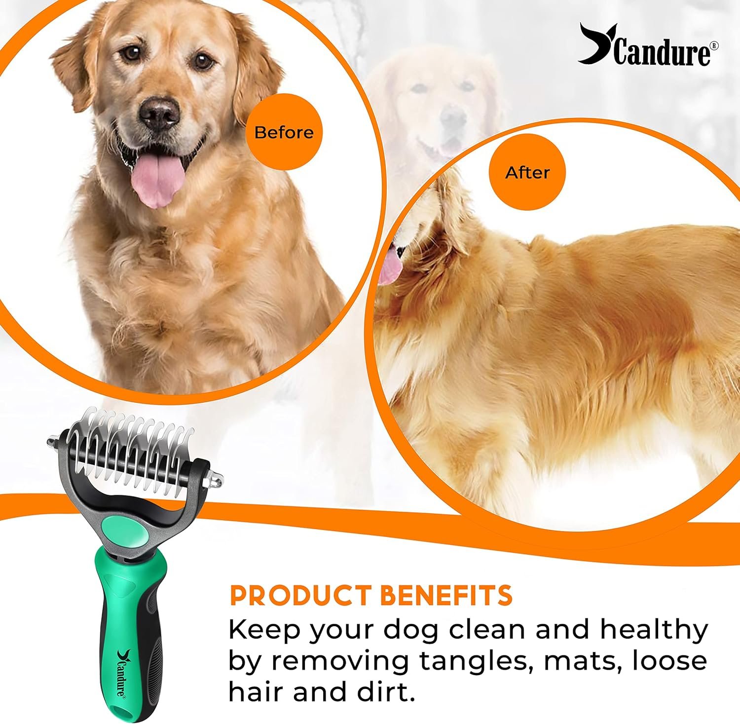 Experience hassle-free detangling and coat restoration with Candure’s ideal dematting brush.
