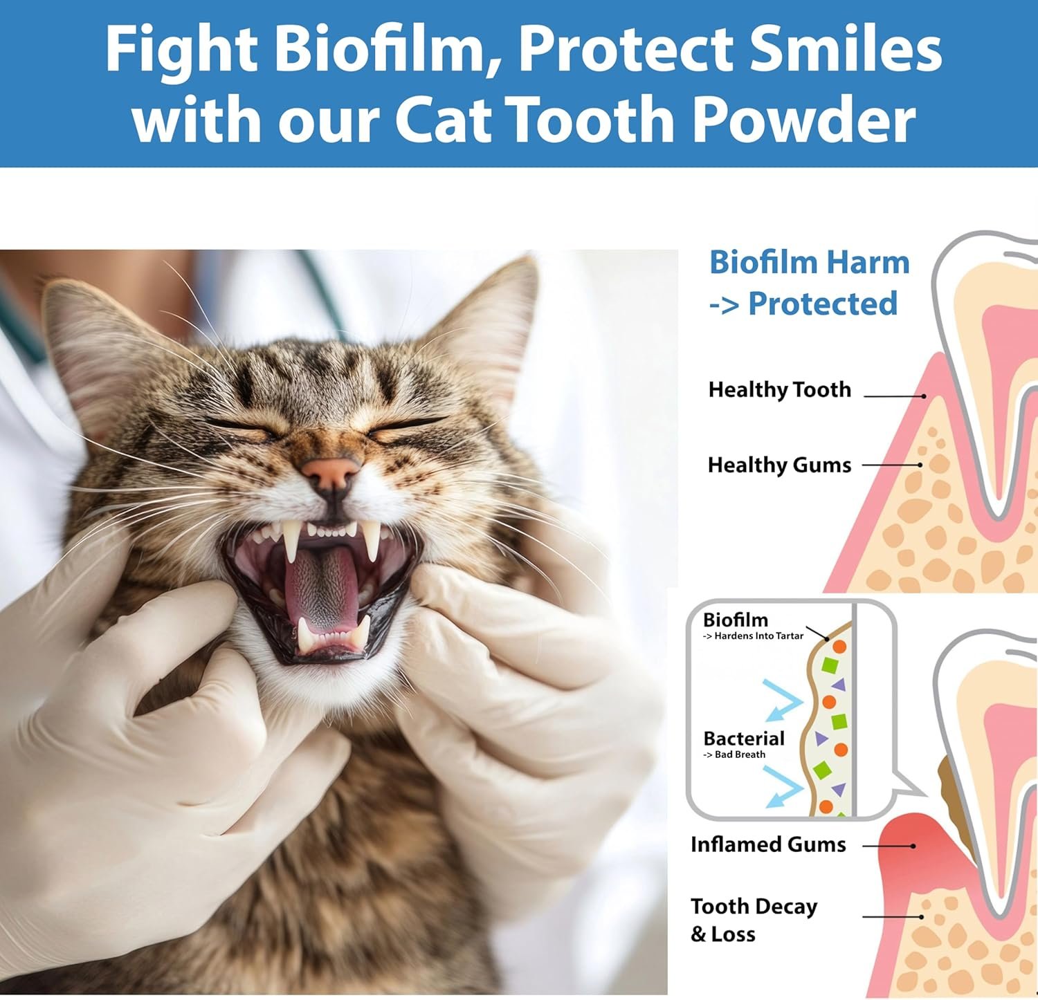 Cat Dental Care Powder Bad Breath Treatment for Cats Teeth, Mouth, Gums & Gut, Plaque Off,Tartar Control, Help Feline Gingivitis and Stomatitis, with Natural Extracts & Probiotics
