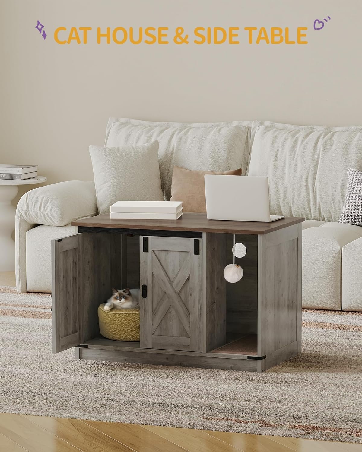 The Perfect Blend of Family: This rustic style and unique barn door shaped litter box cabinet can be used as a cat litter box or as a finished cat house, giving your cat a comfortable home