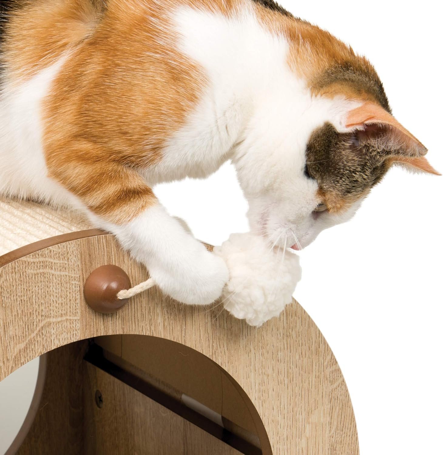 This piece of cat furniture is a combination of a cat scratching post and hiding place