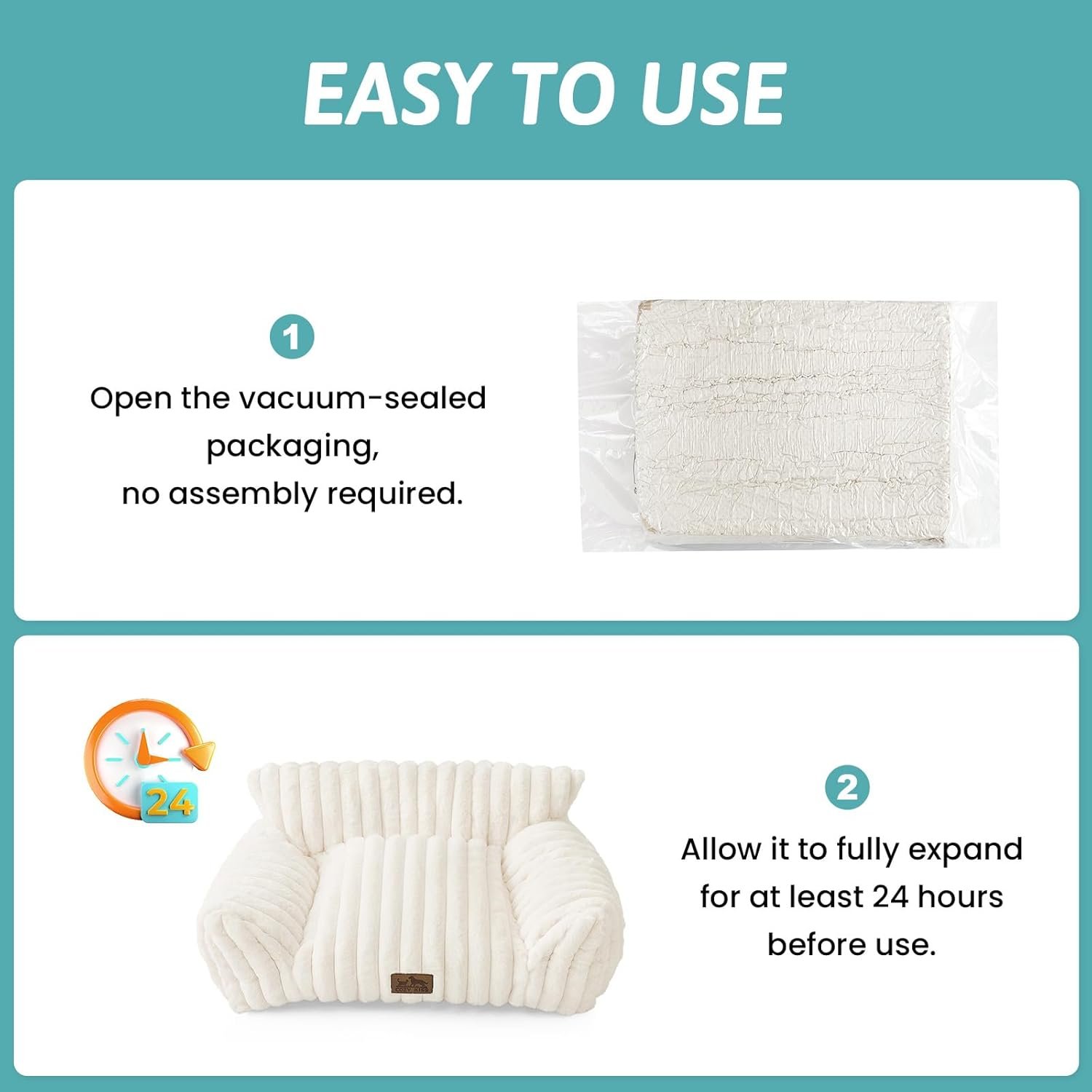 Clean & to Use: This pet sofa features a one-piece, non-removable design. If your washing machine is large enough, simply toss it in for a quick wash. For spot cleaning, just wipe with a wrung-out rag. Tip: After unboxing, allow 24 hours for the foam to fully expand for maximum fluffiness!
