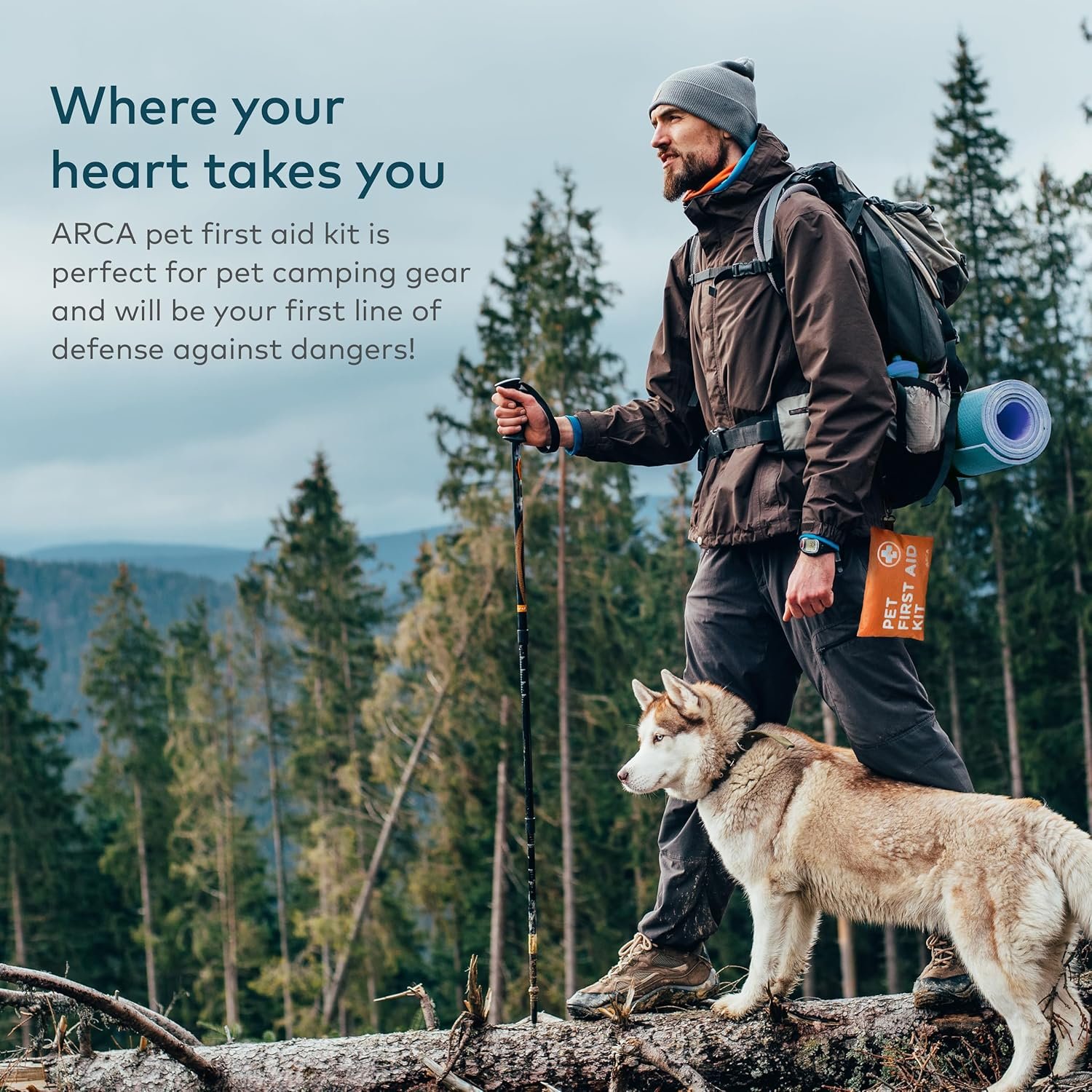 READY FOR ADVENTURE: ARCA PET First Aid Kit for dogs, with dog travel accessories, ensures preparedness for minor and major situations, providing your pet the care it needs on your outdoor excursions.