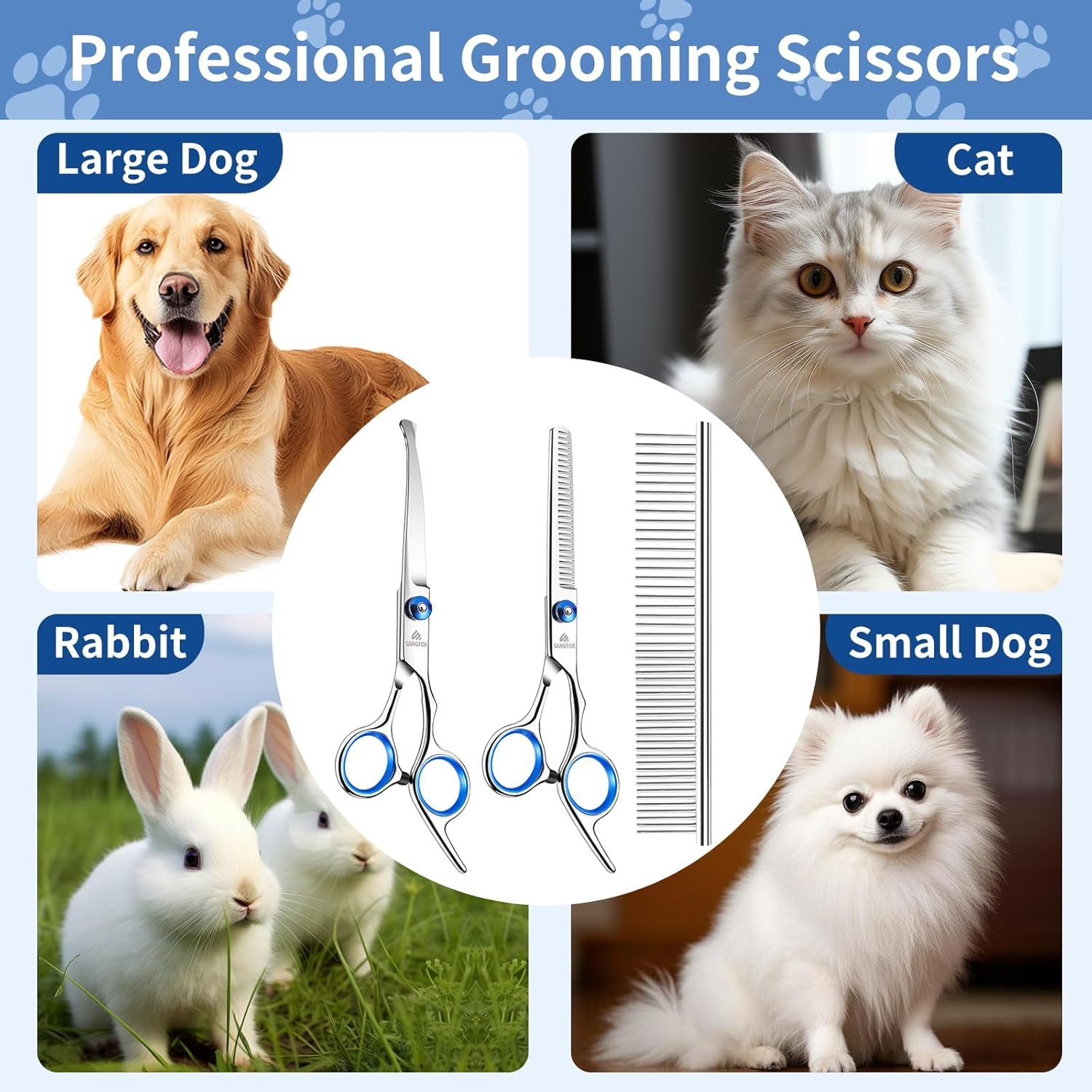 dog Grooming Scissors Kits with Safety Round Tips, Heavy Duty Stainless Steel Pet Shears