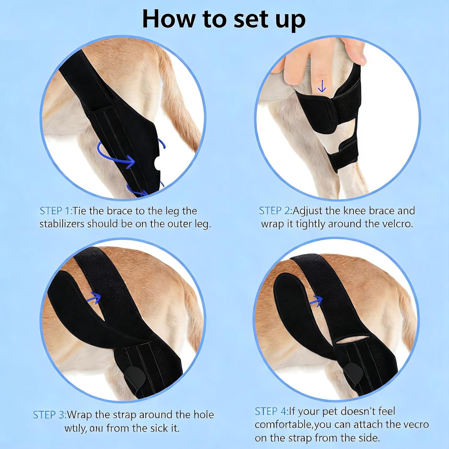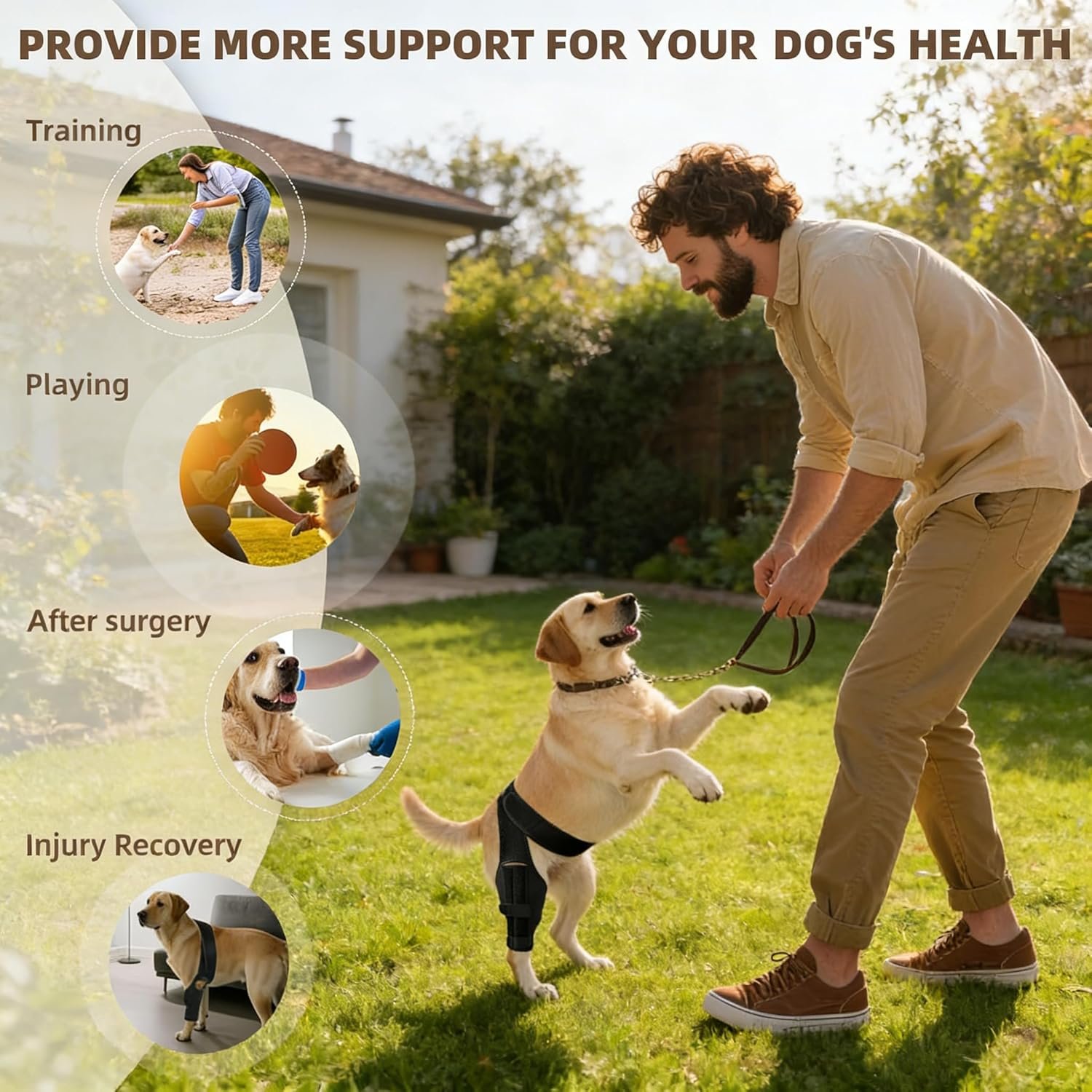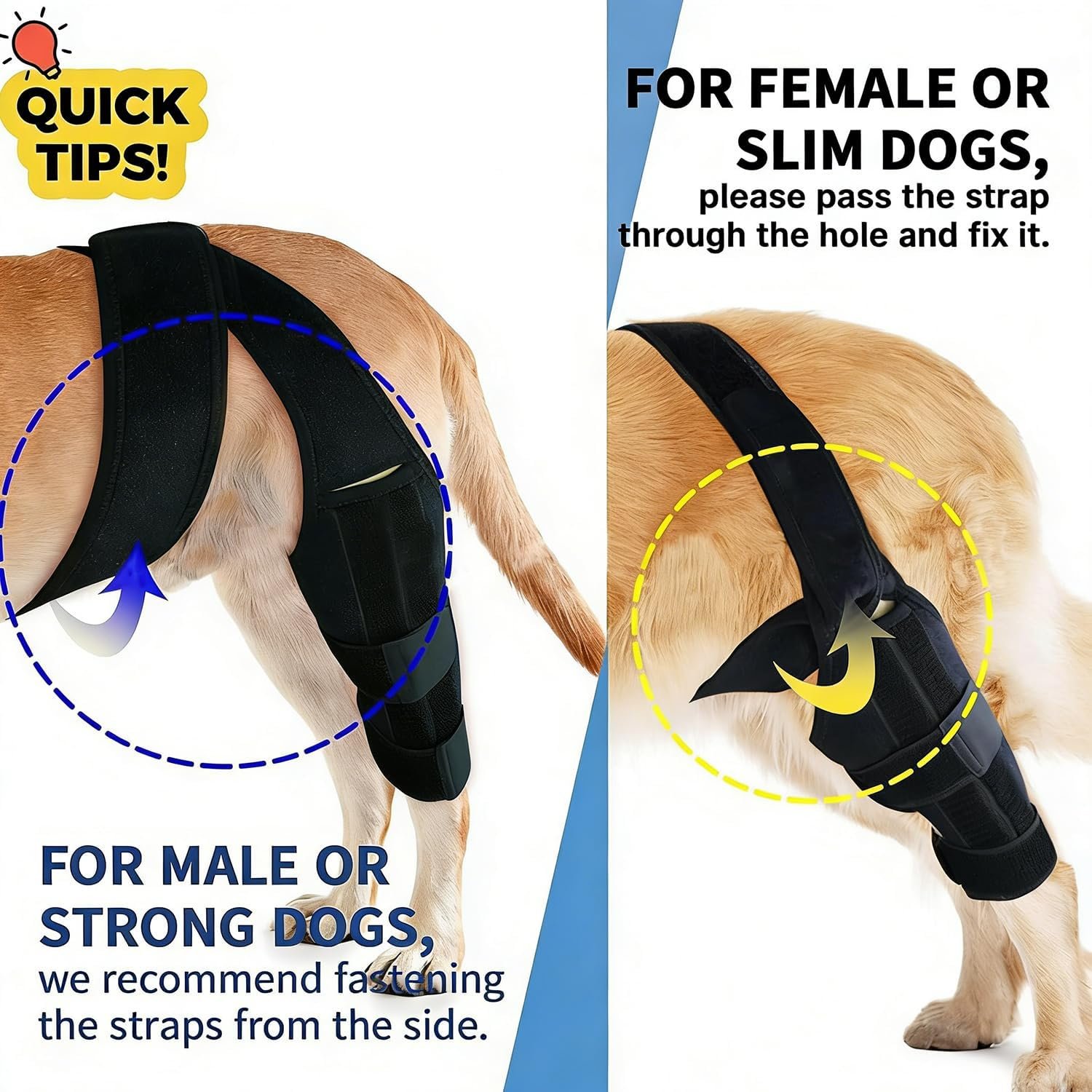 Relieves Knee Pain & Cruciate Ligament Injuries:The leg braces for dogs not only wraps the upper leg joints on a daily basis to prevent wear and tear injuries, but also relieves pain associated with cruciate ligament injuries and pain from osteoarthritis and kneecap problems
