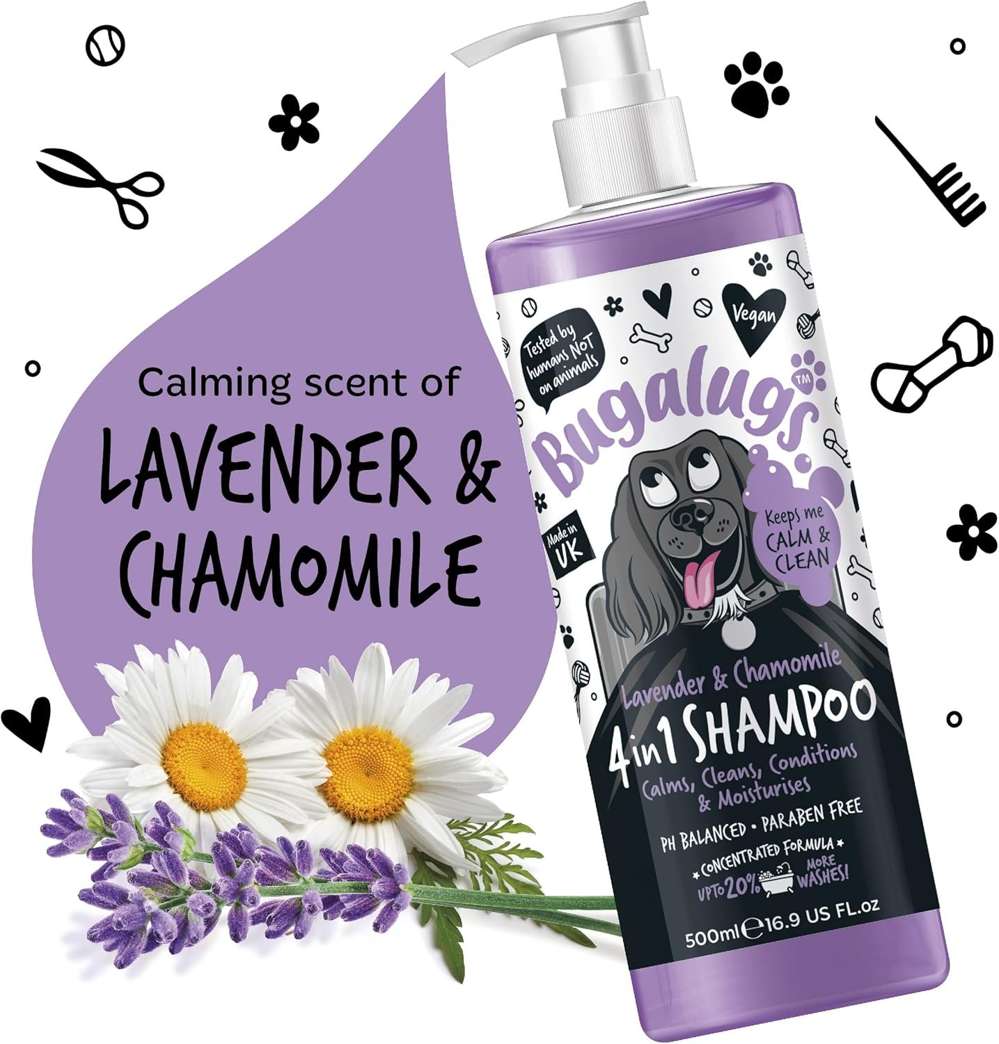 Ph balanced – enriched with lavender & chamomile, vegan dog grooming shampoo suitable for all breeds and puppies over 8 weeks. Sensitive shampoo for dogs