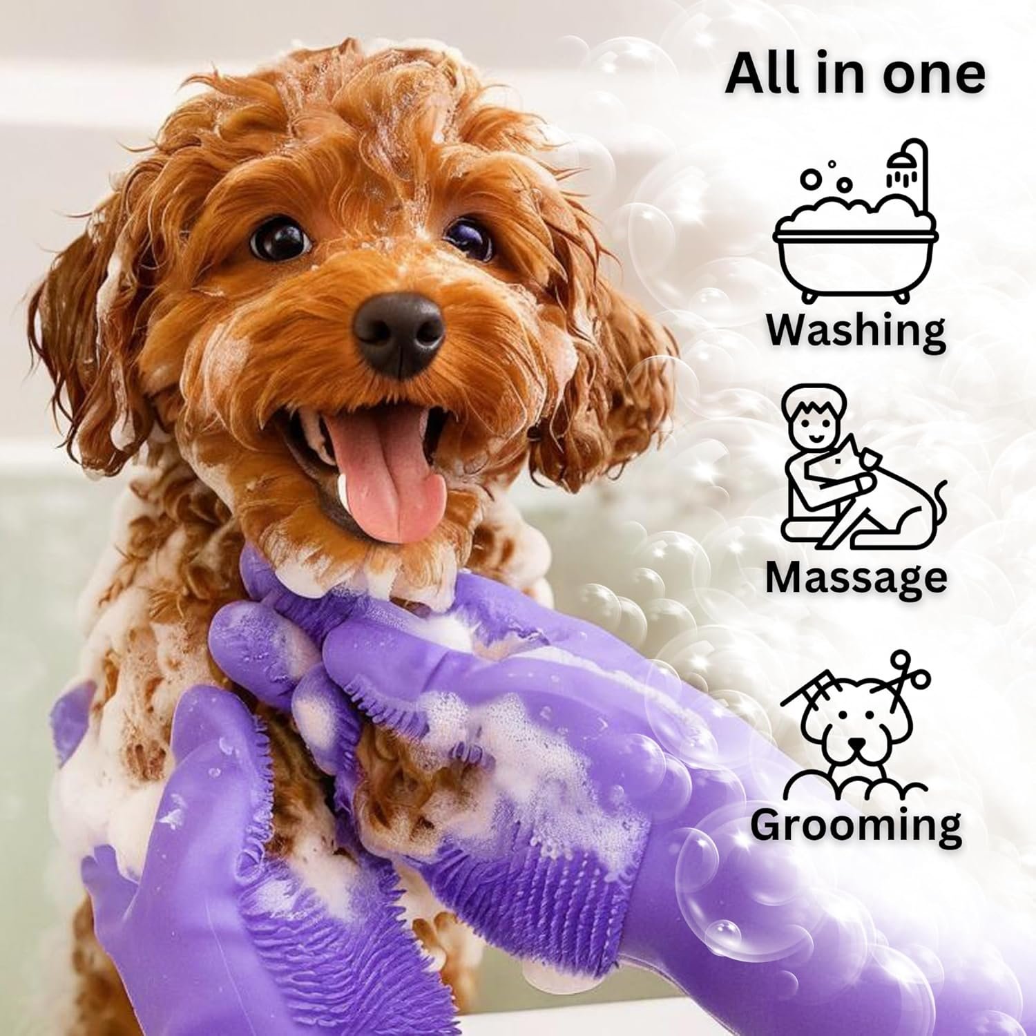 [MULTI-PET GROOMING: DOGS, CATS & MORE]: Our gloves work on all furry friends! Whether you’re looking for cat shampoo gloves, dog gloves for bathing, or a reliable pet hair removal glove, this is your go-to tool. Great for long-haired dogs, short-haired breeds, and shedding cats — it’s like a spa day for them, and a stress-free bath for you.