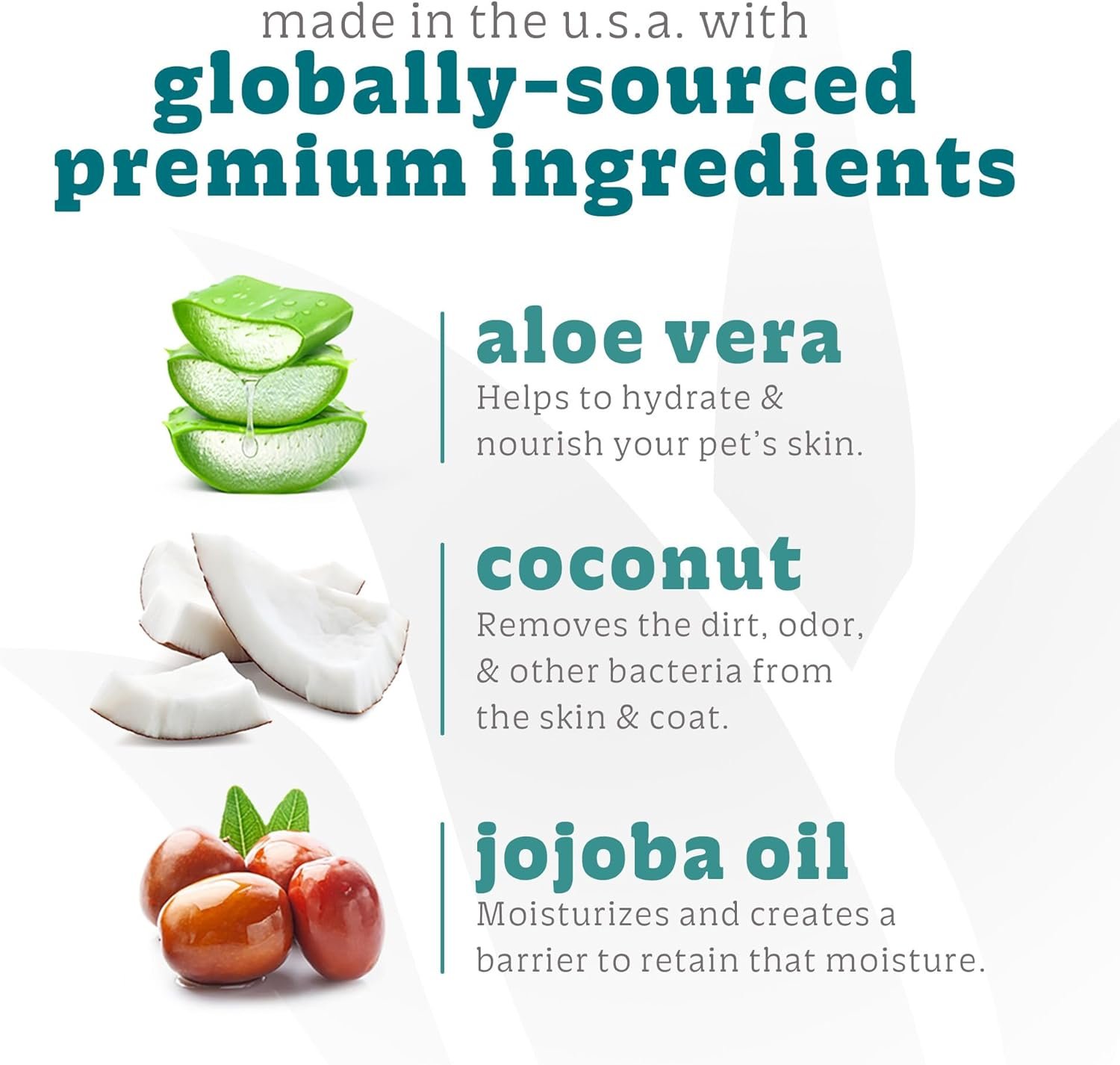FORMULATED WITH ALOE: Infused with the soothing and moisturizing properties of Aloe Vera, ensuring a soft, healthy, and shiny coat while promoting skin hydration.