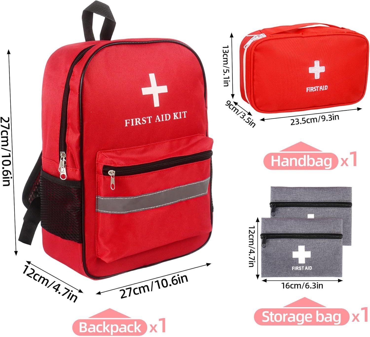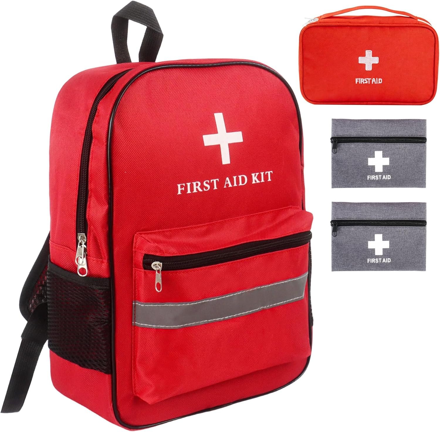 First Aid Bag Empty 4-Piece Set with Large First Aid Backpack, 2 Portable Pouches & Carry Medical Bag for Pet, Car, Travel, Camping, Emergency Supplies Storage (Red Gray)