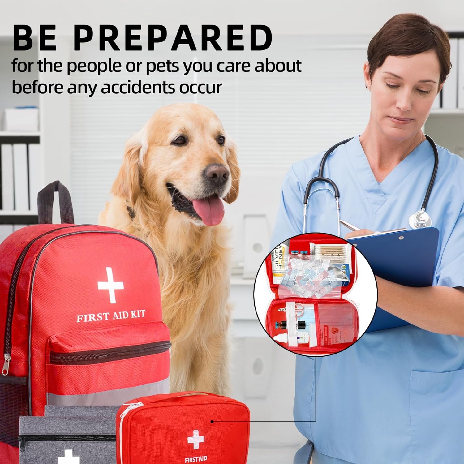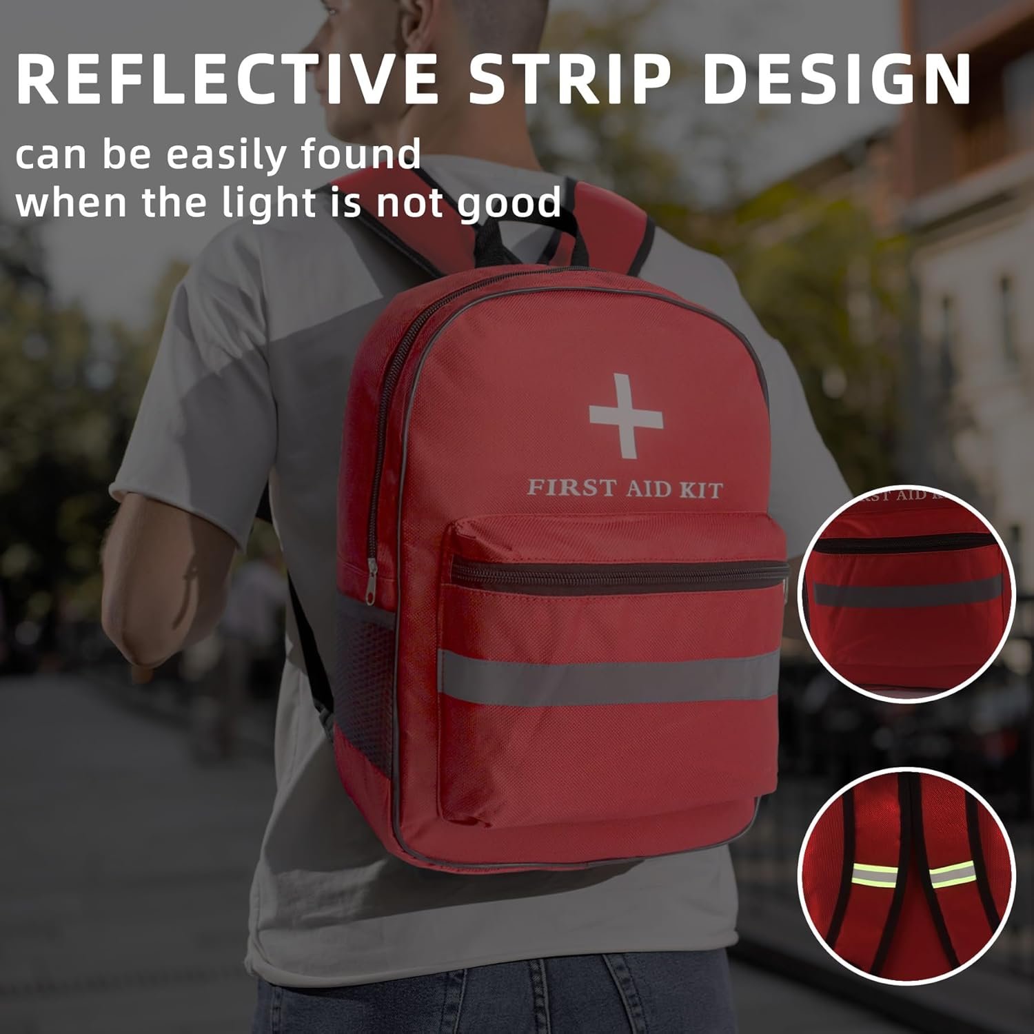 Large Capacity: This large first aid kit backpack features a roomy 37x27x12cm main compartment with multiple internal pockets and dividers. Perfectly store and separate all your emergency supplies, from bandages and medicines to scissors and pet care items, ensuring everything is visible and accessible in critical moments for both home and adventure use