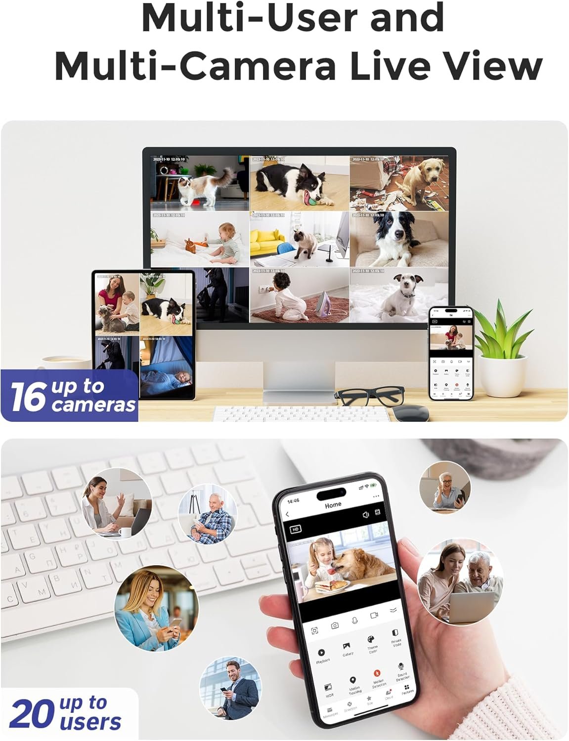 Smart Motion and Sound Detection & Instant Notification: Security Cameras Built-In Advanced AI Human and Pet Detection to reduce false alerts; Camera records and sends push alert when motion, human presence, or a crying baby is detected