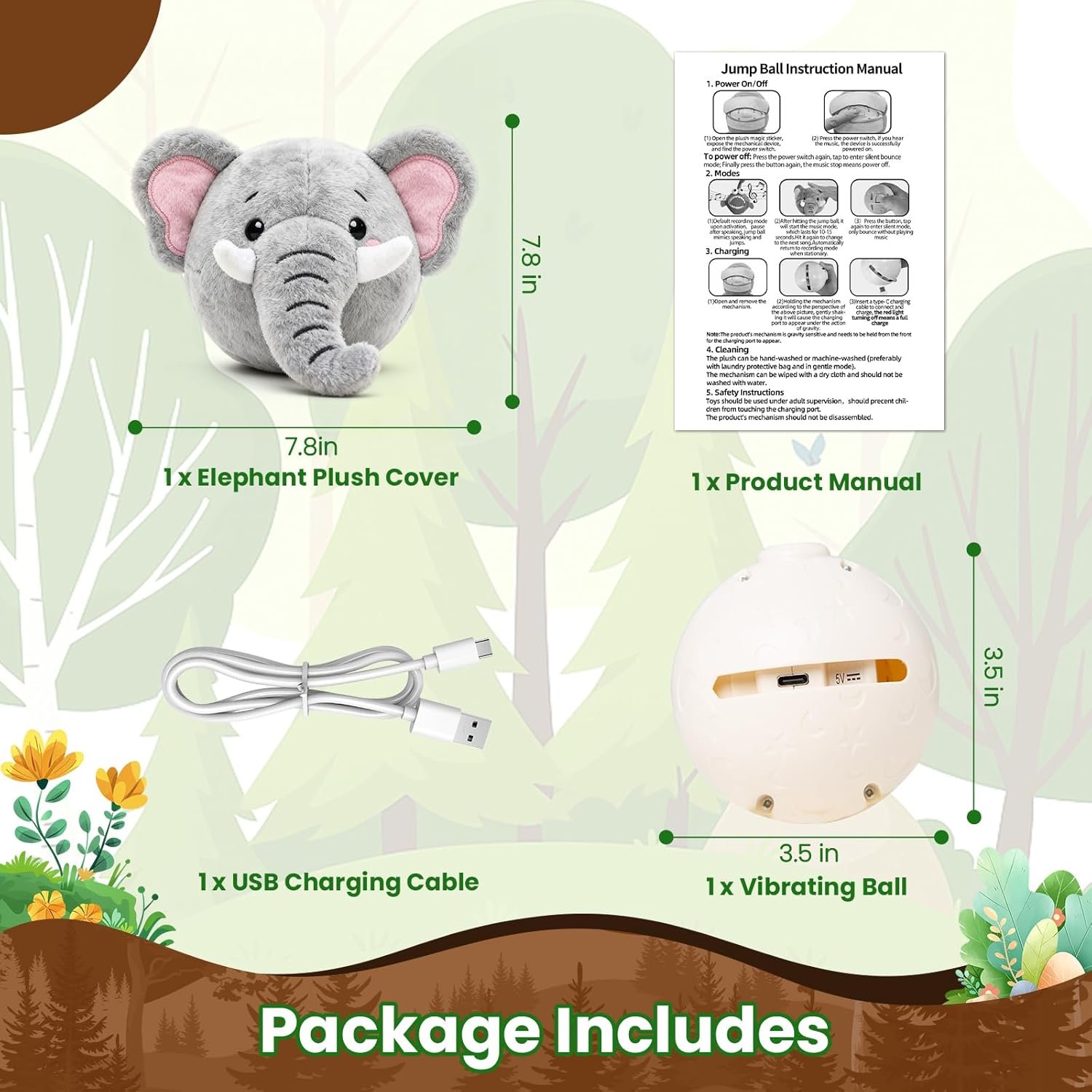 Interactive Dog Toys, Self Moving Dog Toy to Keep Them Busy, Electronic Vibrating Dogs Toy/Squeaky Bouncing Ball for Small Medium Large Dogs with Jumping Music Talking Silent Mode (Elephant)