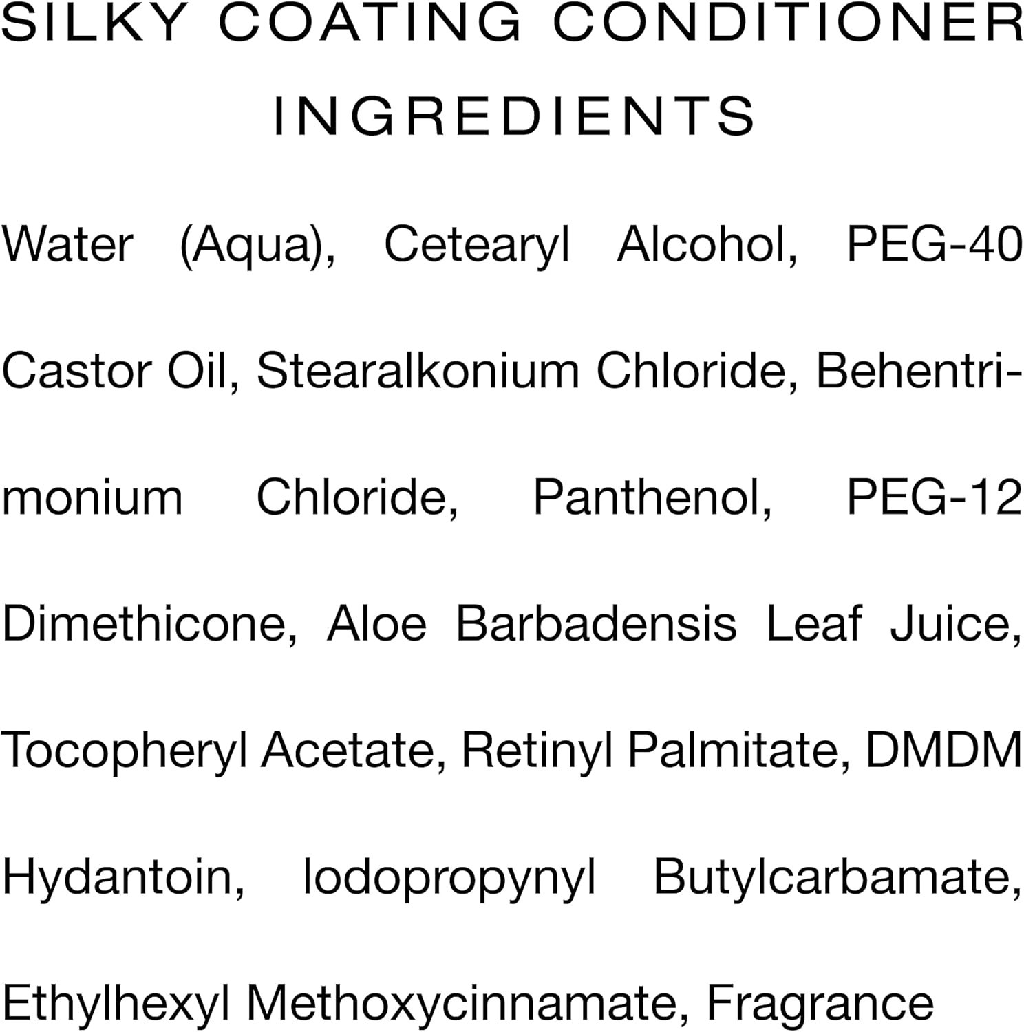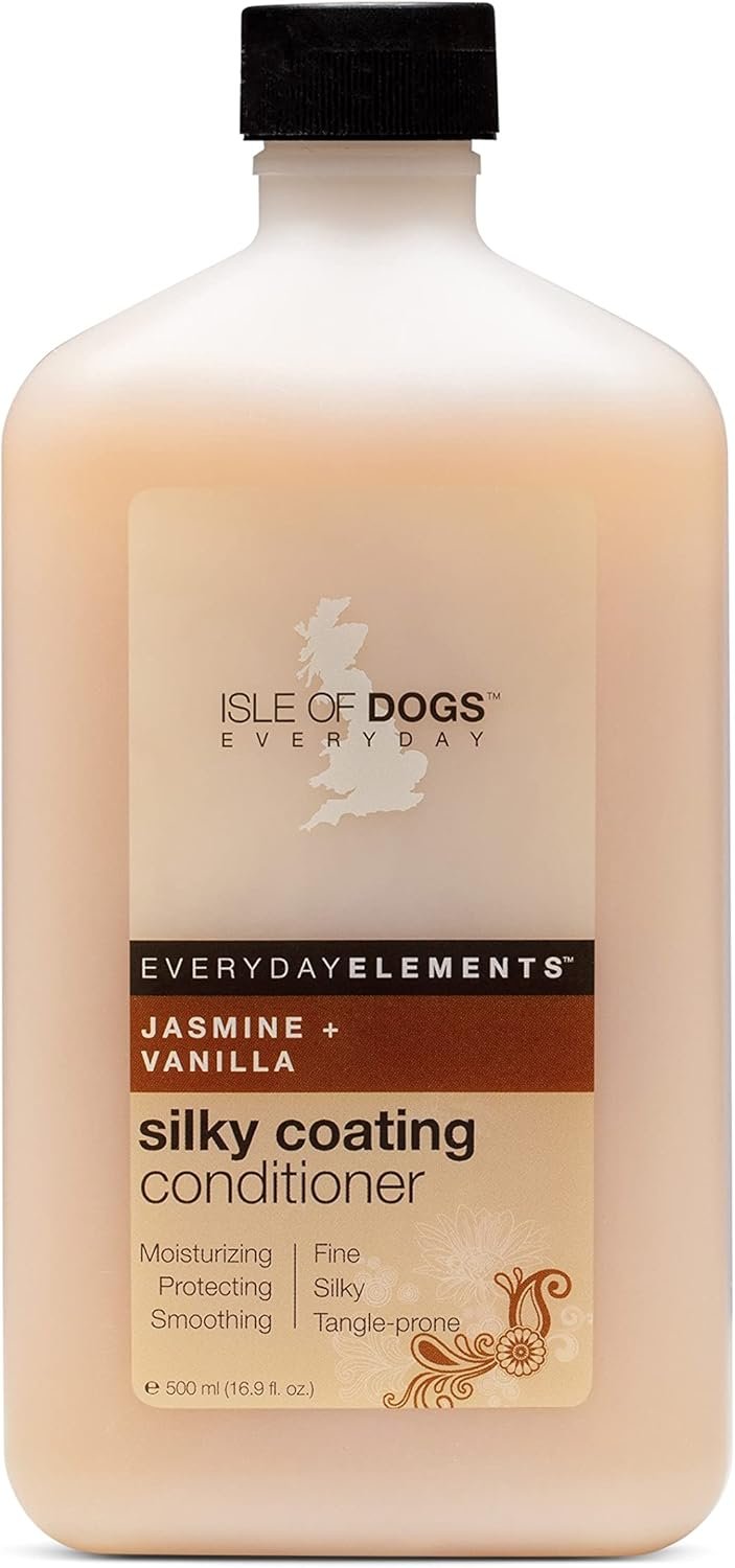 Silky Coating ConditionerA deep-penetrating coat conditioner formulated to moisturize, protect, and add shine! Everyday Elements’ moisturizing conditioner for dogs gives their coat noticeable softness, smoothness, and manageability—helping the coat lay flat and releasing dead coat to reduce excess shedding after bathing. Aloe Leaf Juice and proteins give long and short coats that silkiness you desire, with added shine, fewer tangles, and matting. Perfect for fine, silky & tangle-prone hair.Fresh & CleanSilky Coating conditioner features our signature warm floral jasmine & vanilla fragrance and ExtenScent, a natural odor-neutralizing complex that extends coat freshness, leaving your pampered pup smelling their best long after grooming!Salon Results At HomeEveryday Elements is a ready-to-use professional-quality grooming salon collection featuring performance-driven ingredients in high functionality formulas. To achieve show-worthy results, apply Conditioner to a clean, damp coat. Let sit for 1-2 minutes before rinsing. Follow up with Brush Spray for added softness and detangling.Ingredients:Water, Cetearyl Alcohol, PEG-40 Castor Oil, Stearalkonium Chloride, Behentrimonium Chloride, Panthenol, PEG-12 Dimethicone, Aloe Barbadensis Leaf Juice, Tocopheryl Acetate, Retinyl Palmitate, DMDM Hydantoin, Iodopropynyl Butylcarbamate, Ethylhexyl Methoxycinnamate, FragranceWant the smoothest results? Use our complete Silky Coating collection! Sensitive skin? Try the Everyday Natural Luxury collection of sulfate and paraben-free products.Isle of DogsWe take beauty beyond fluff with premium grooming products that promote inner wellness and outer beauty. Rooted in our rich dog show heritage and search for excellence, our proprietary line of canine health and beauty products, sourced and made in the USA, supports a beautifully balanced and joyful life that makes every dog shine.