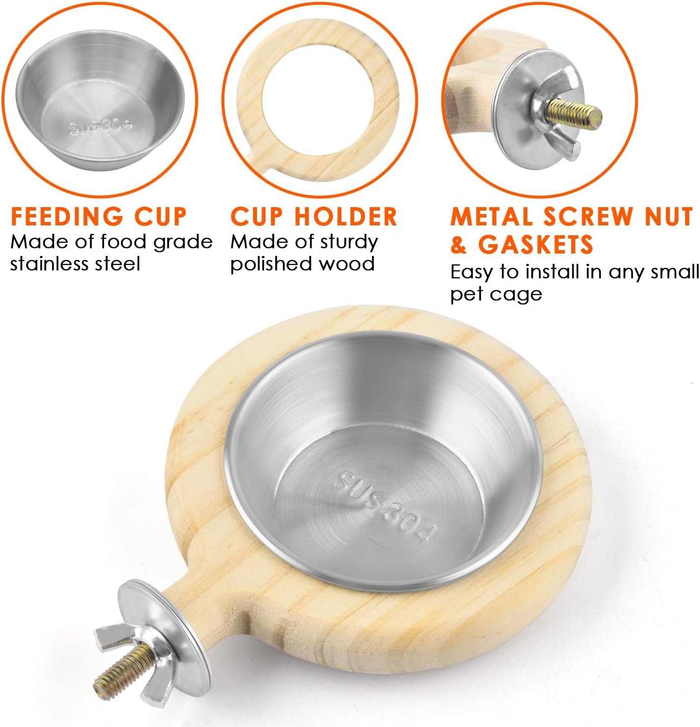 EASY TO USE: With metal gaskets and nut, the bowl holder can be installed in all pet cage. Sturdy and stable for small birds to stand on the rim while enjoying food dish