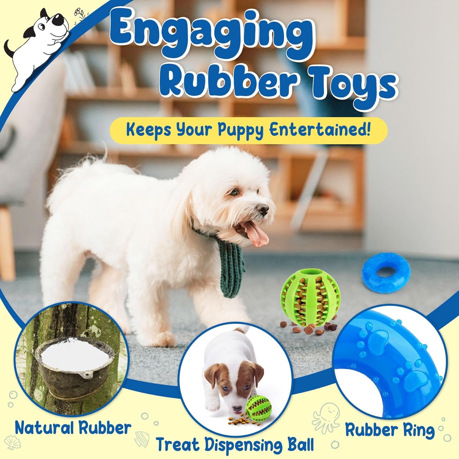 Explore Various Benefits: Puppy chew toys for teething keep them engaged, releasing vitality and reducing stress. As your pup gnaws on squeaky toys with varied textures and sounds, they enjoy playful activities, boosting interest and cognitive growth