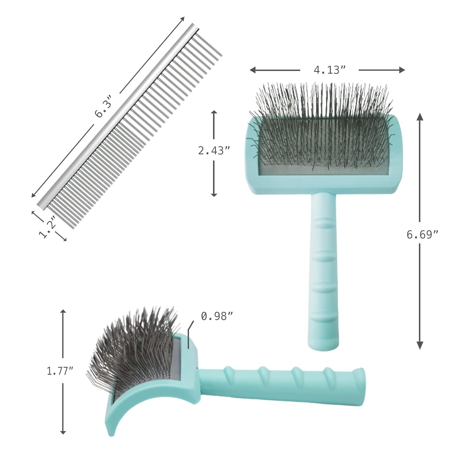 PERFECT HAIR REMOVAL AND GROOMING SET: The NeatHoiho grooming set includes a slicker brush and a heavy-duty metal comb , so you can groom your dog or cat with comfort at home.The slicker brush and comb set is perfect for keeping short or long hair clean and tangle-free, as well as for removing dirt and dander from pets with sensitive skin
