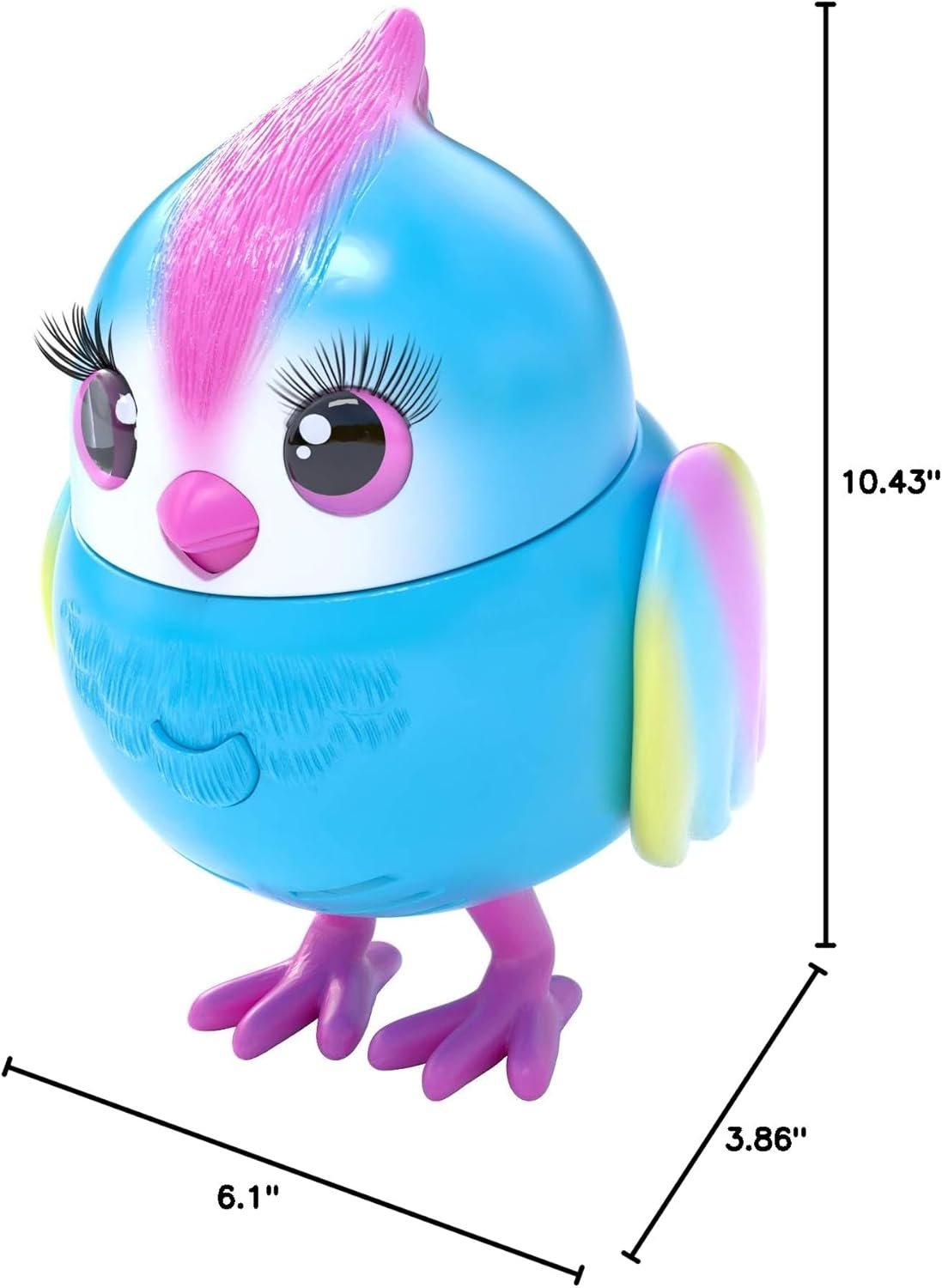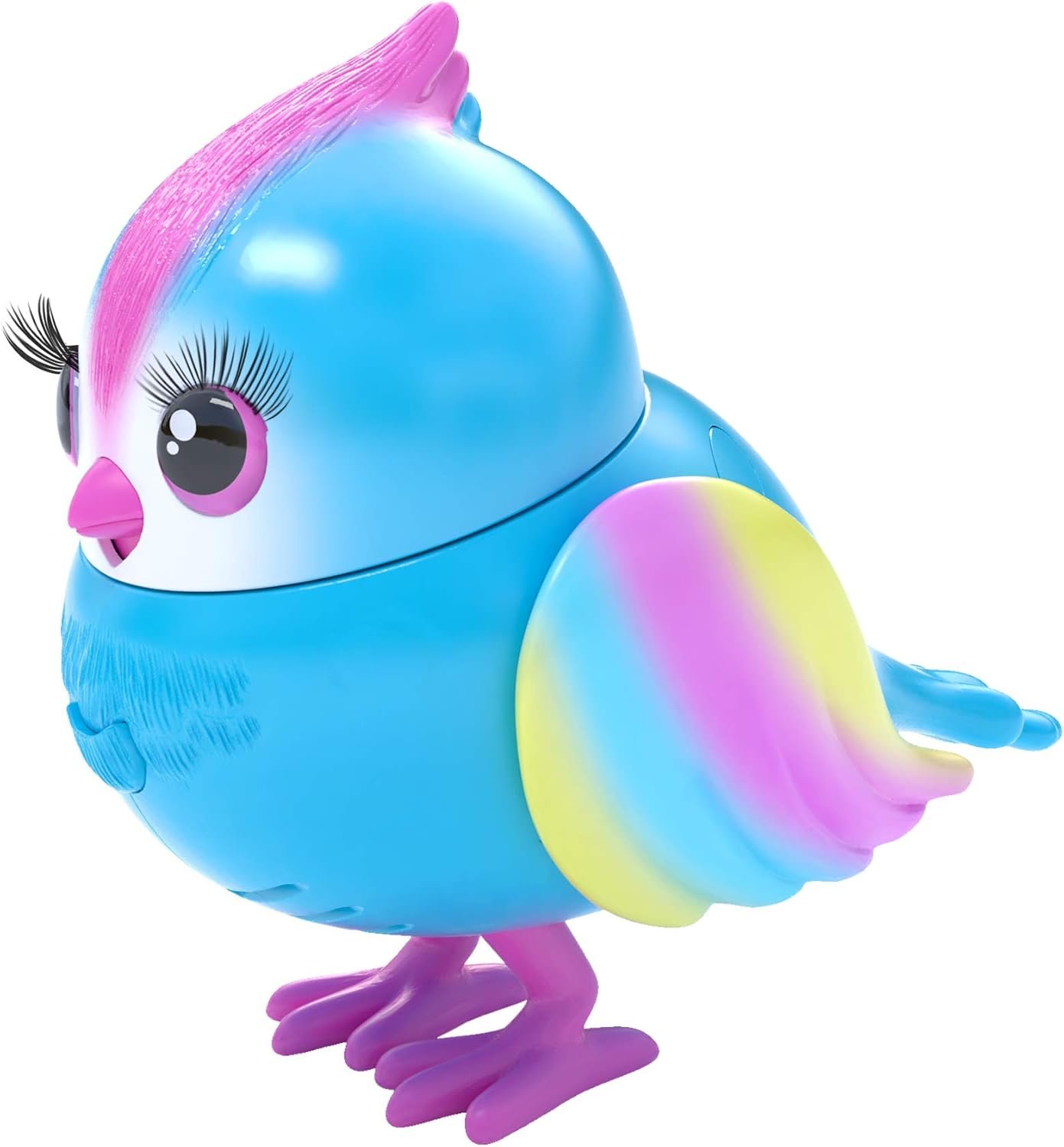 Little Live Pets Bird repeats what you say. These birds love to be pet, the more they’re pet, the more they’ll tweet and sing.